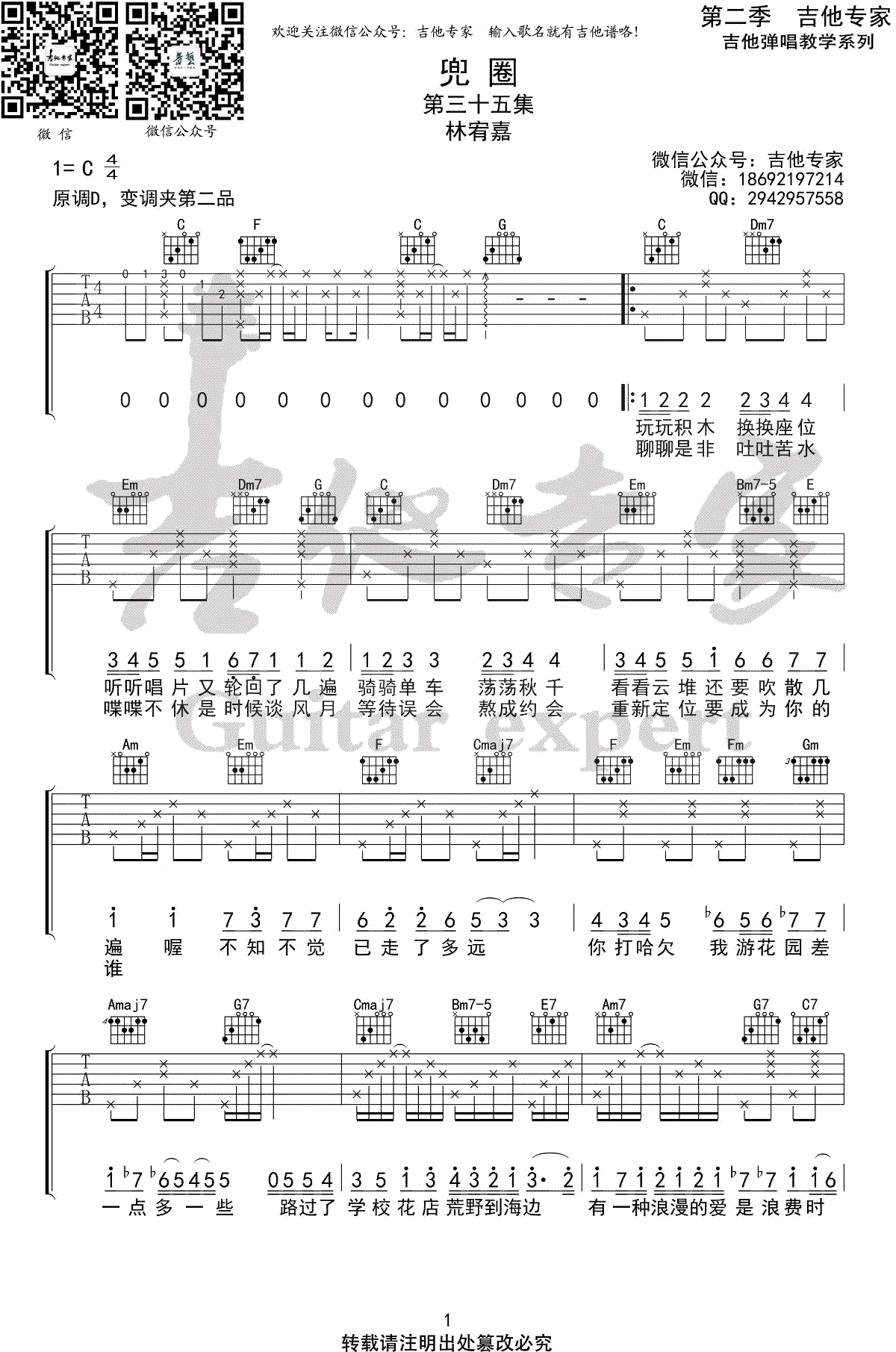 - 兜圈吉他谱_林宥嘉_C调指法_弹唱图片谱