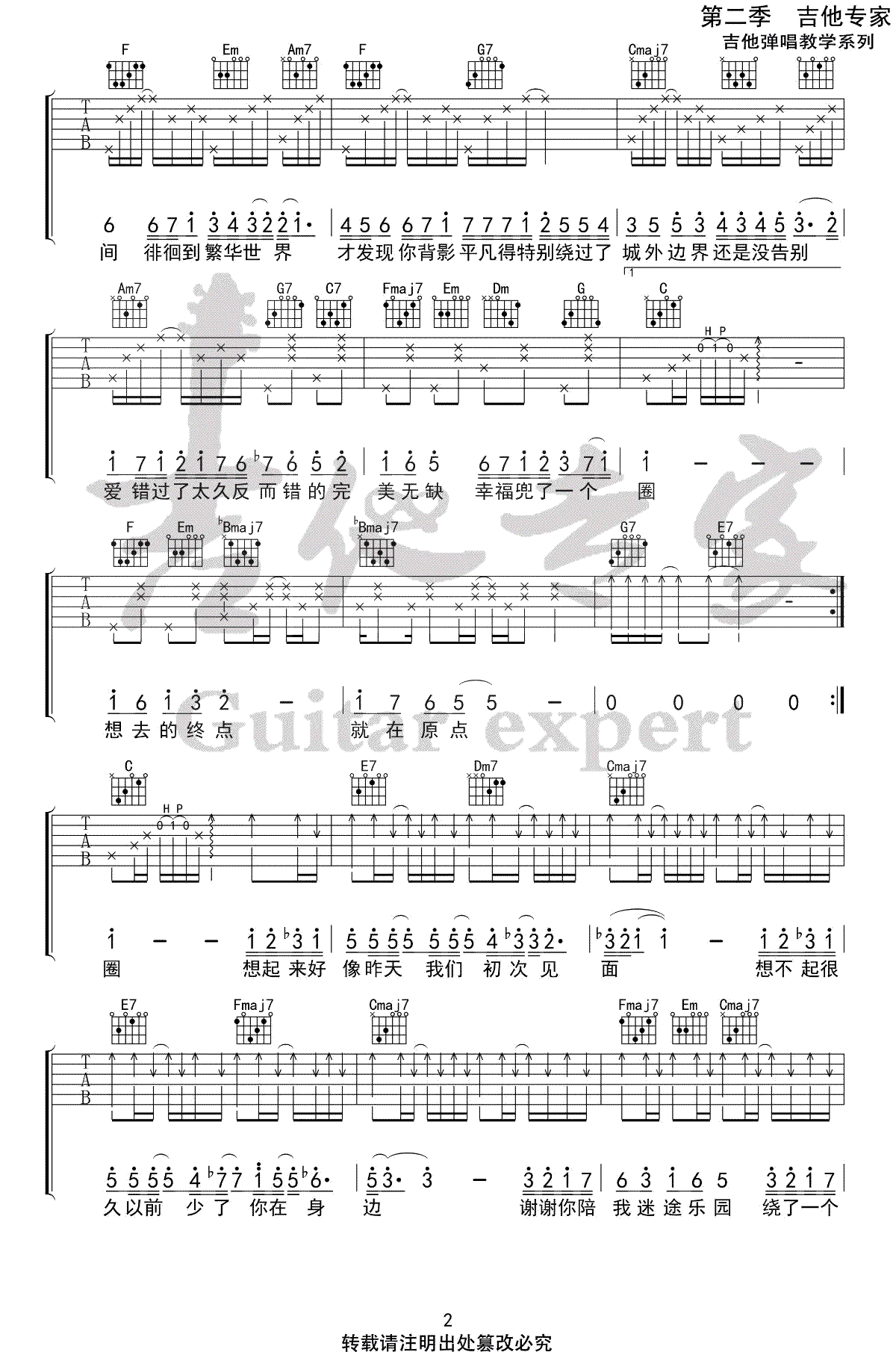 - 兜圈吉他谱_林宥嘉_C调六线谱_吉他弹唱演示