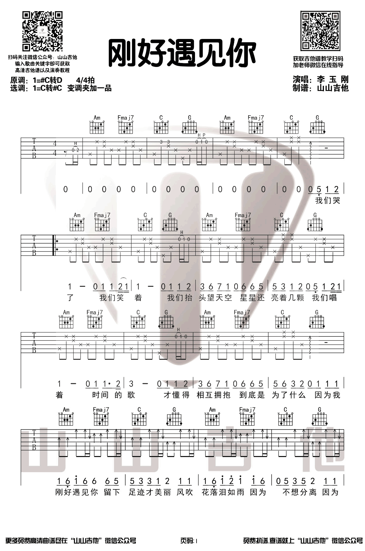 - 刚好遇见你吉他谱_李玉刚_原版吉他谱+演奏视频