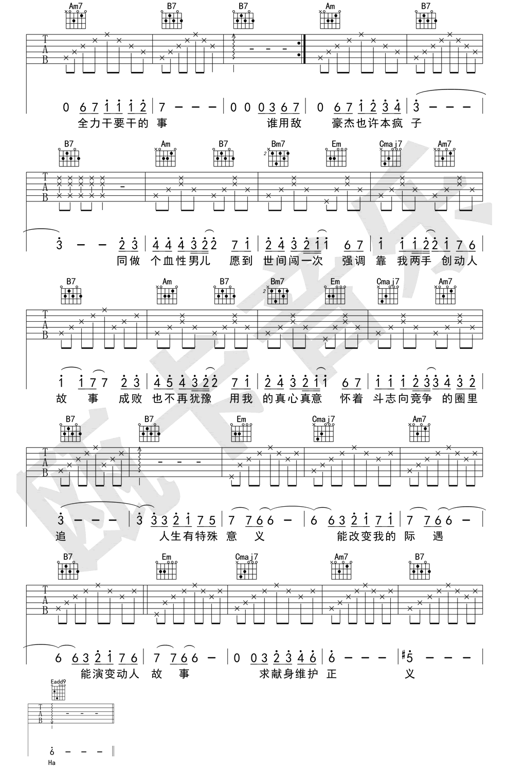 - 真的汉子吉他谱_吴业坤/林子祥_G调_高清弹唱谱