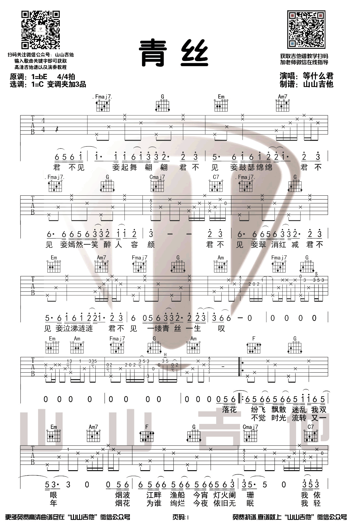 - 青丝吉他谱_等什么君_C调弹唱谱_高清图片谱