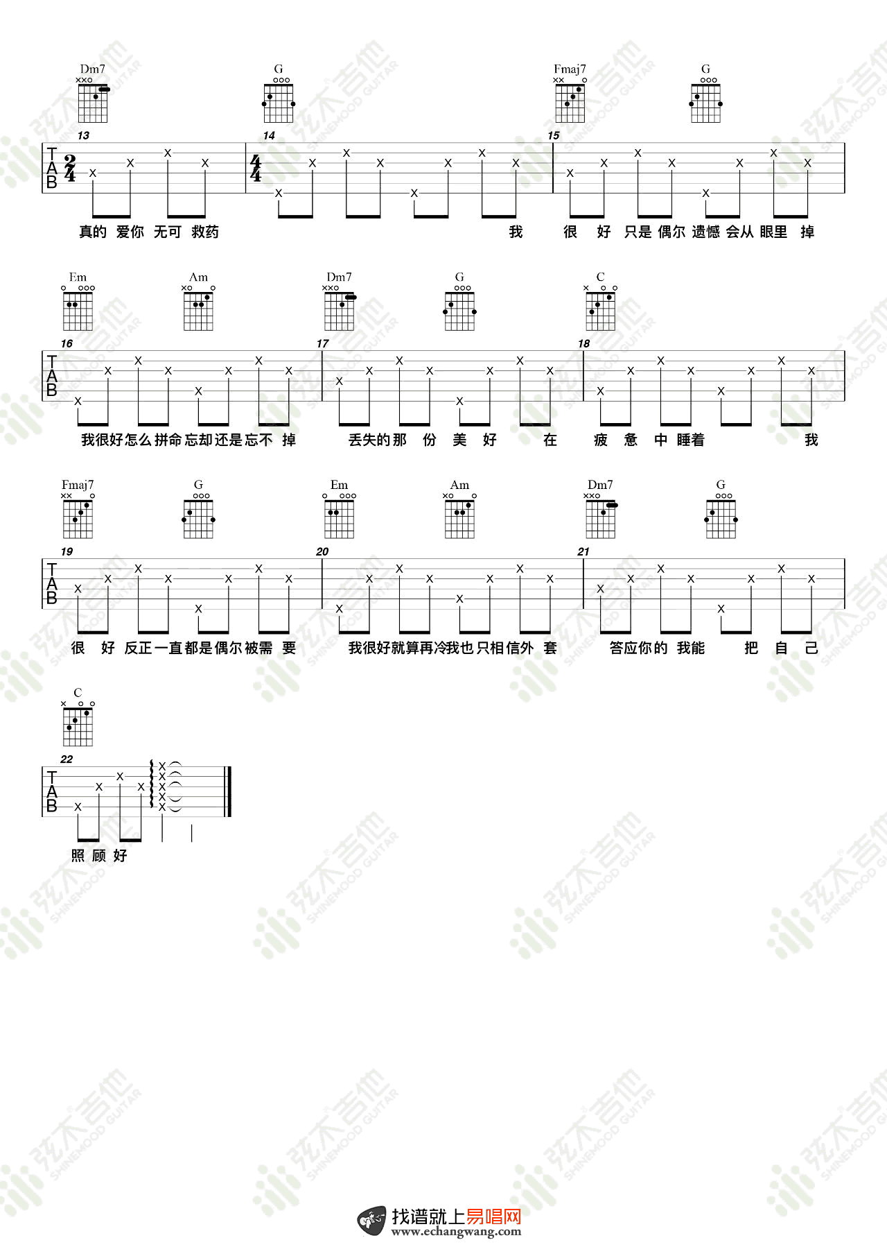 - 刘大壮《我很好》吉他谱_C调简单版_弹唱谱