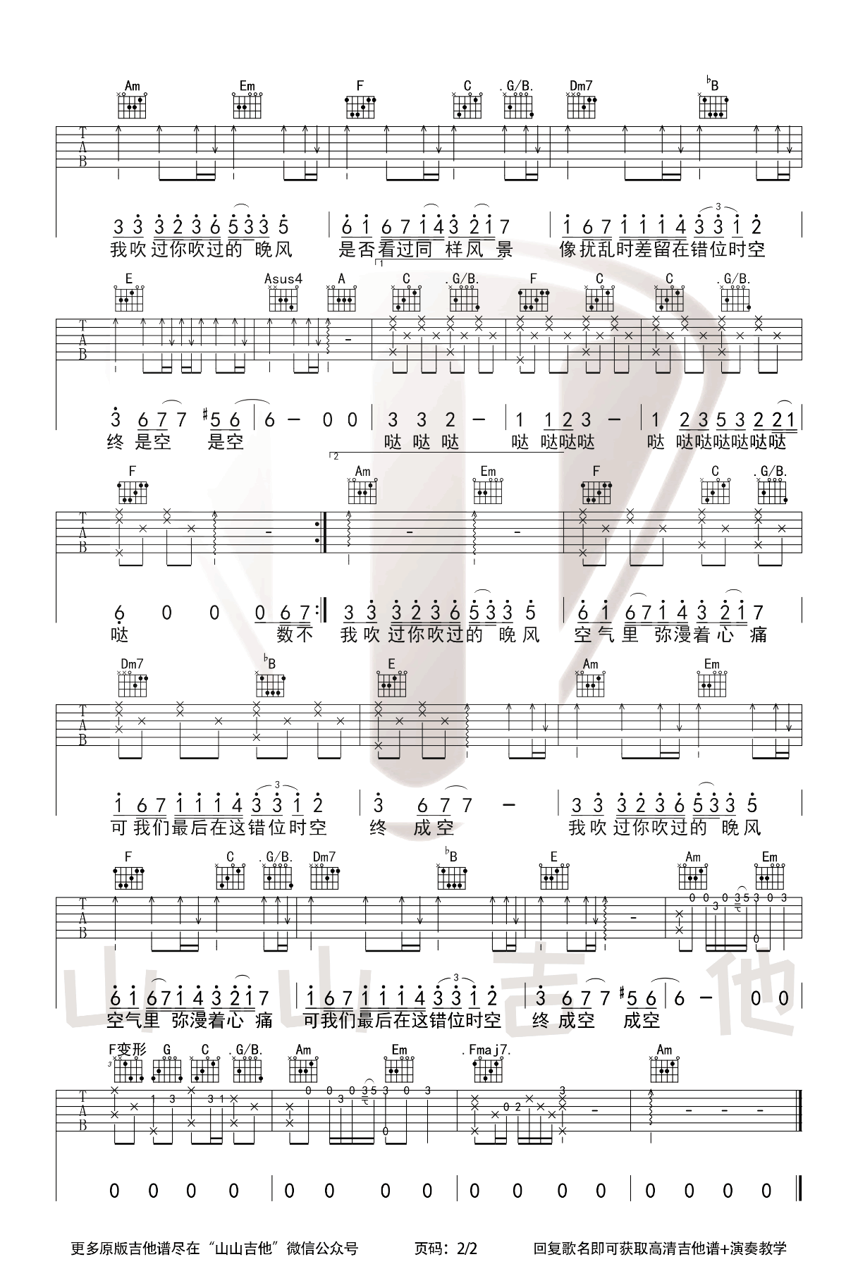 - 错位时空吉他谱_C调六线谱_艾辰_弹唱演示视频