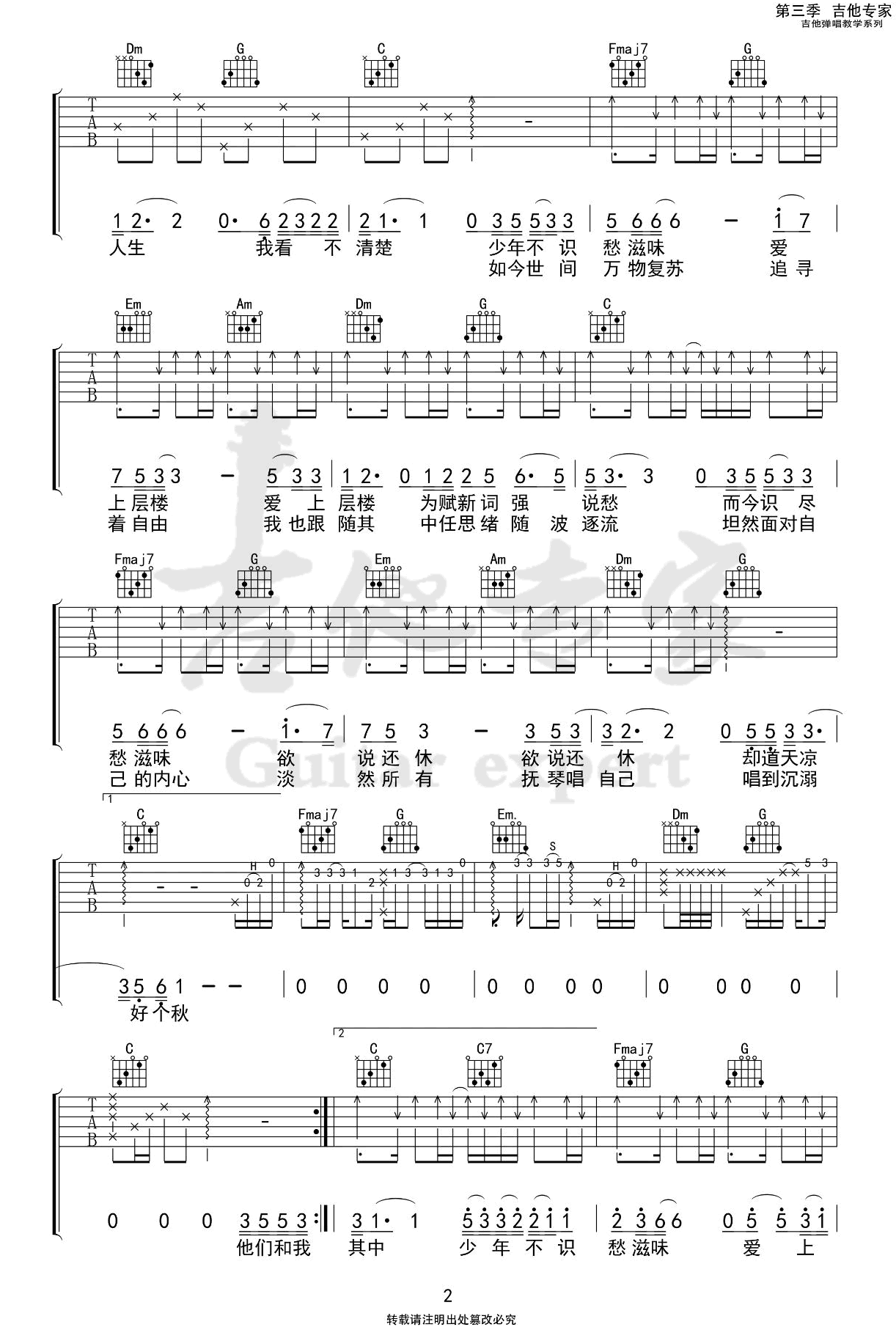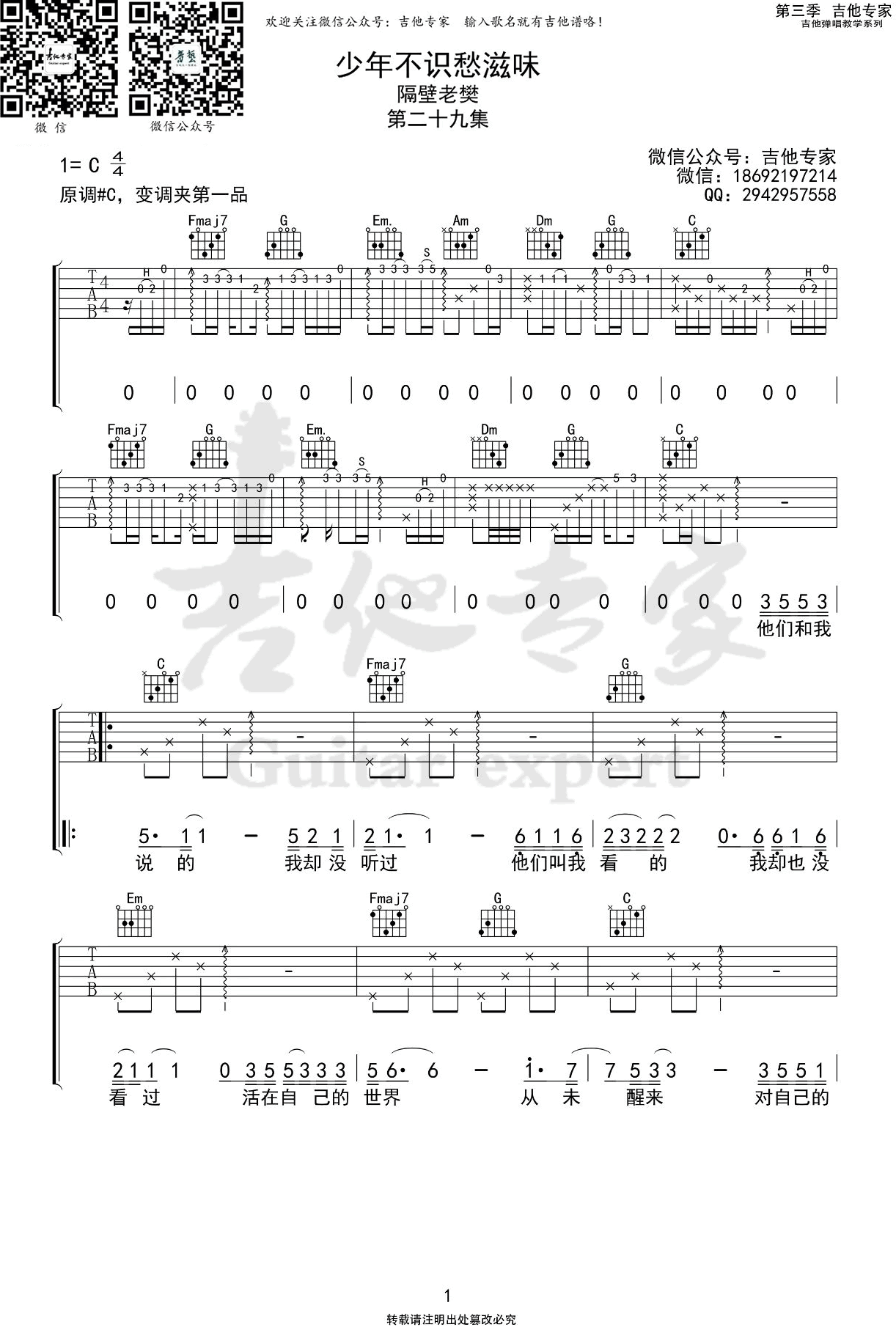 - 少年不识愁滋味吉他谱_隔壁老樊_C调弹唱谱