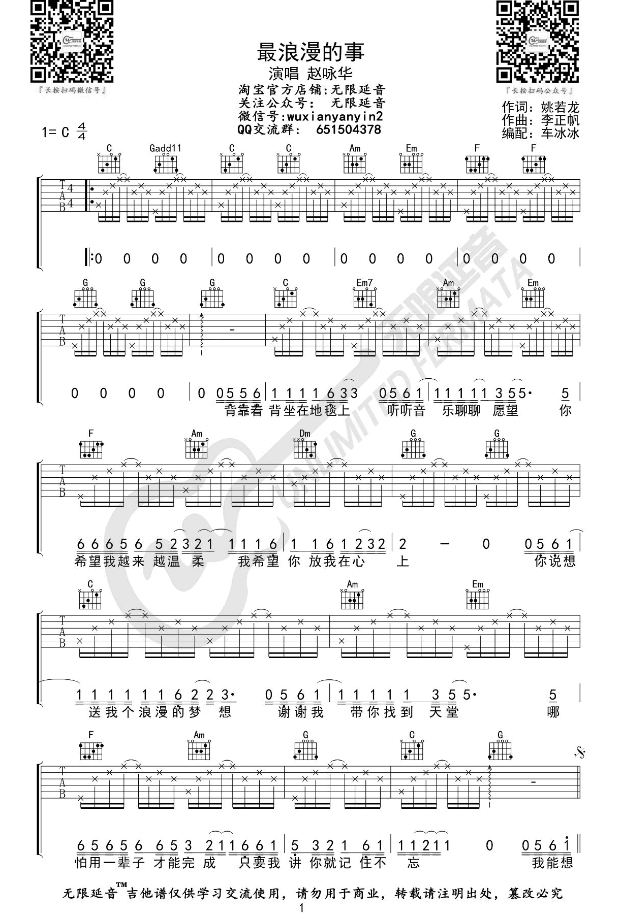 - 最浪漫的事吉他谱_赵咏华_C调_弹唱六线谱