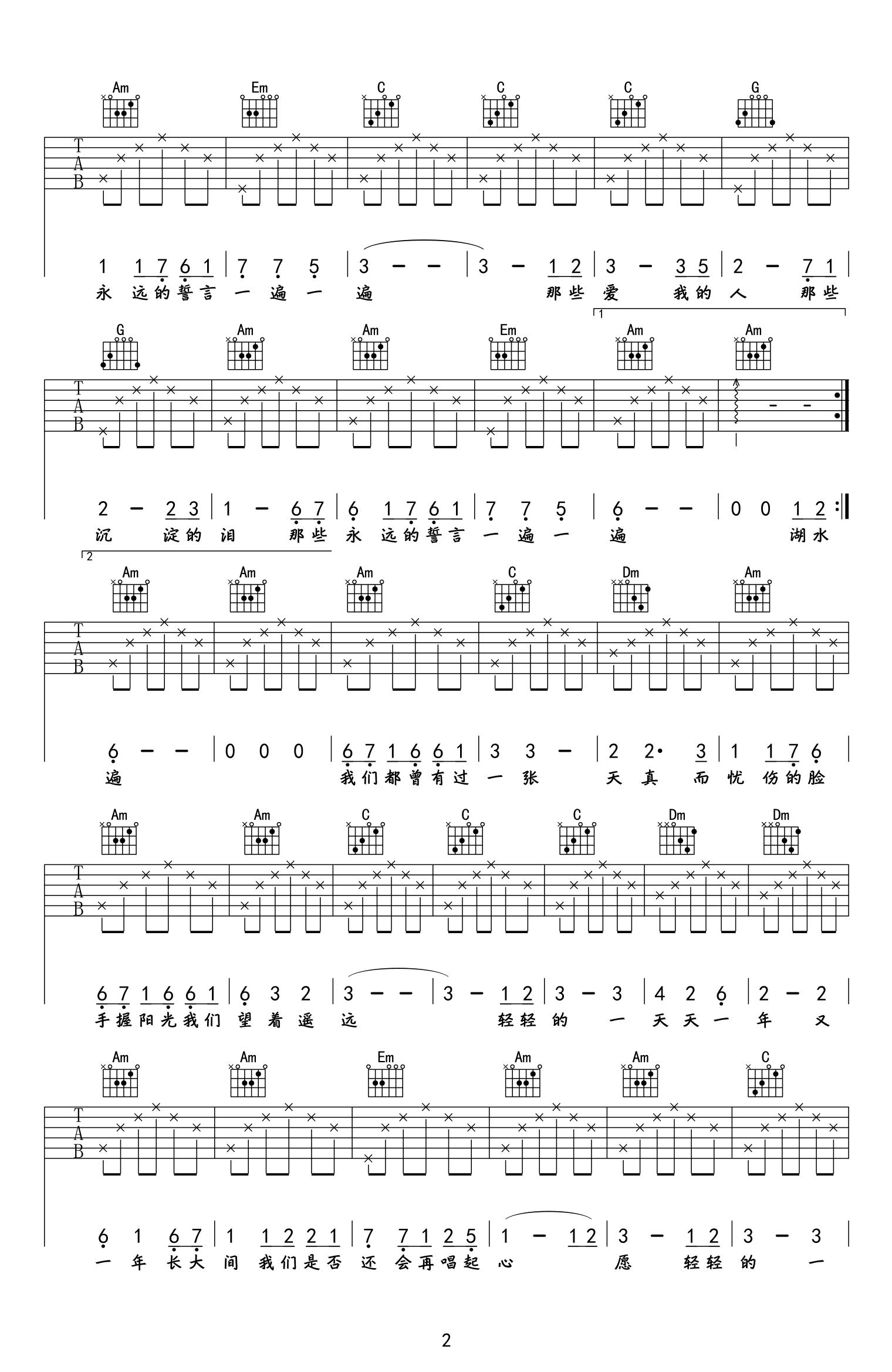 - 同桌的你吉他谱_吉他入门弹唱谱_C调吉他谱