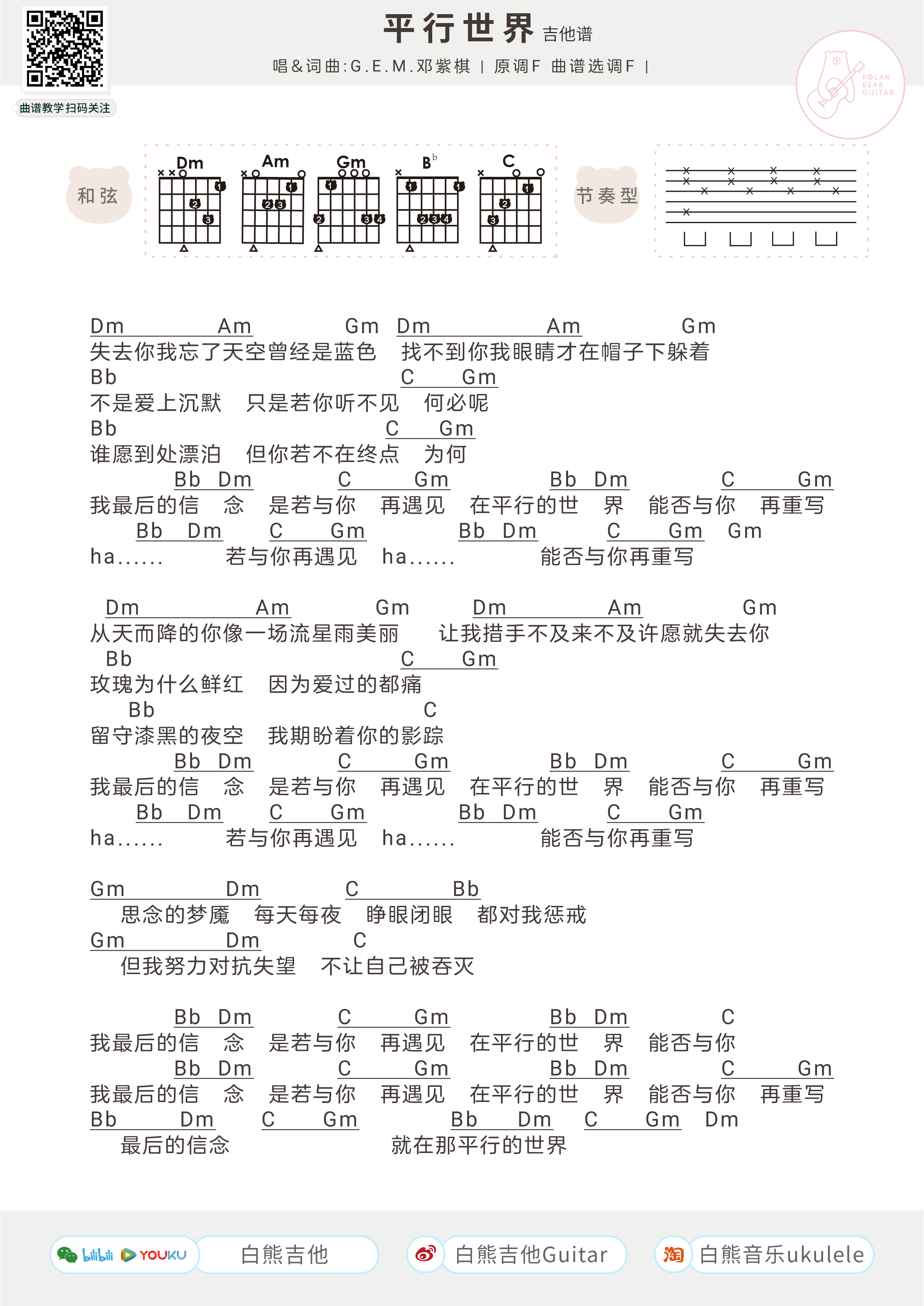 - 平行世界吉他谱_邓紫棋《刺杀小说家》主题曲_和弦弹唱谱