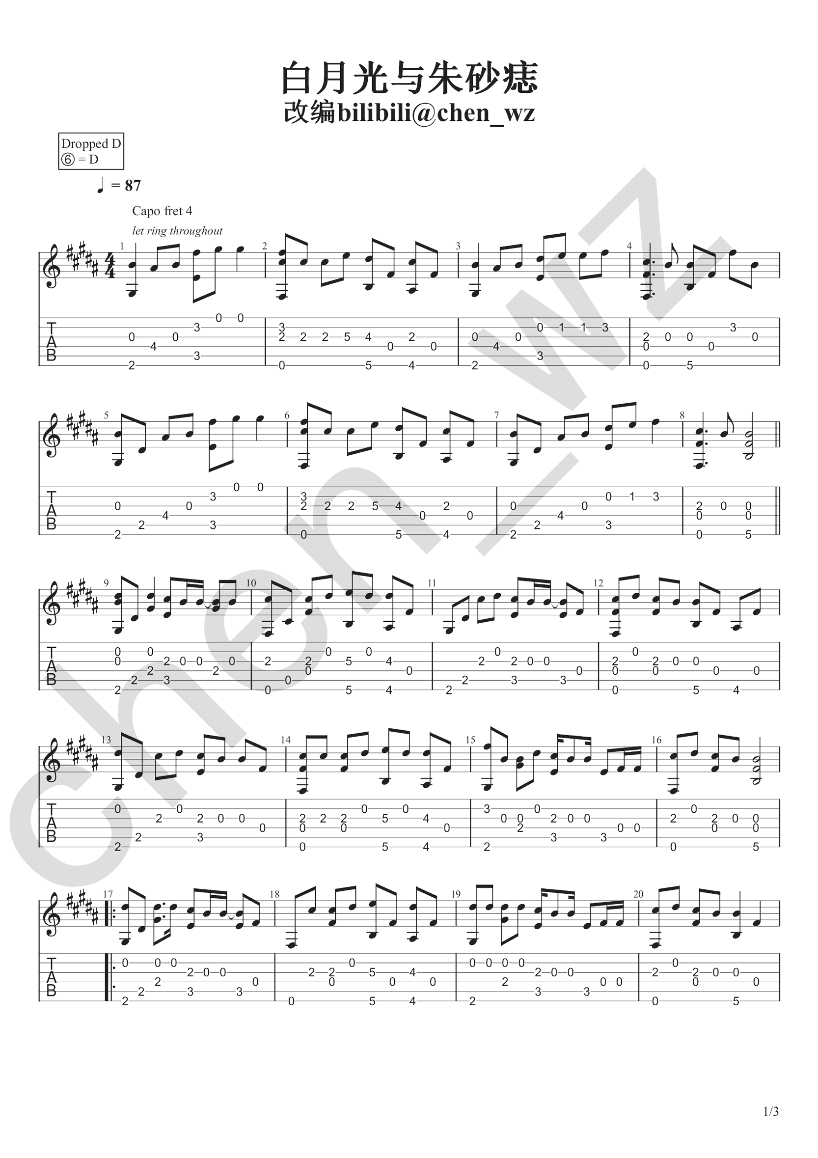 - 白月光与朱砂痣指弹谱_适合新手学习_指弹吉他视频