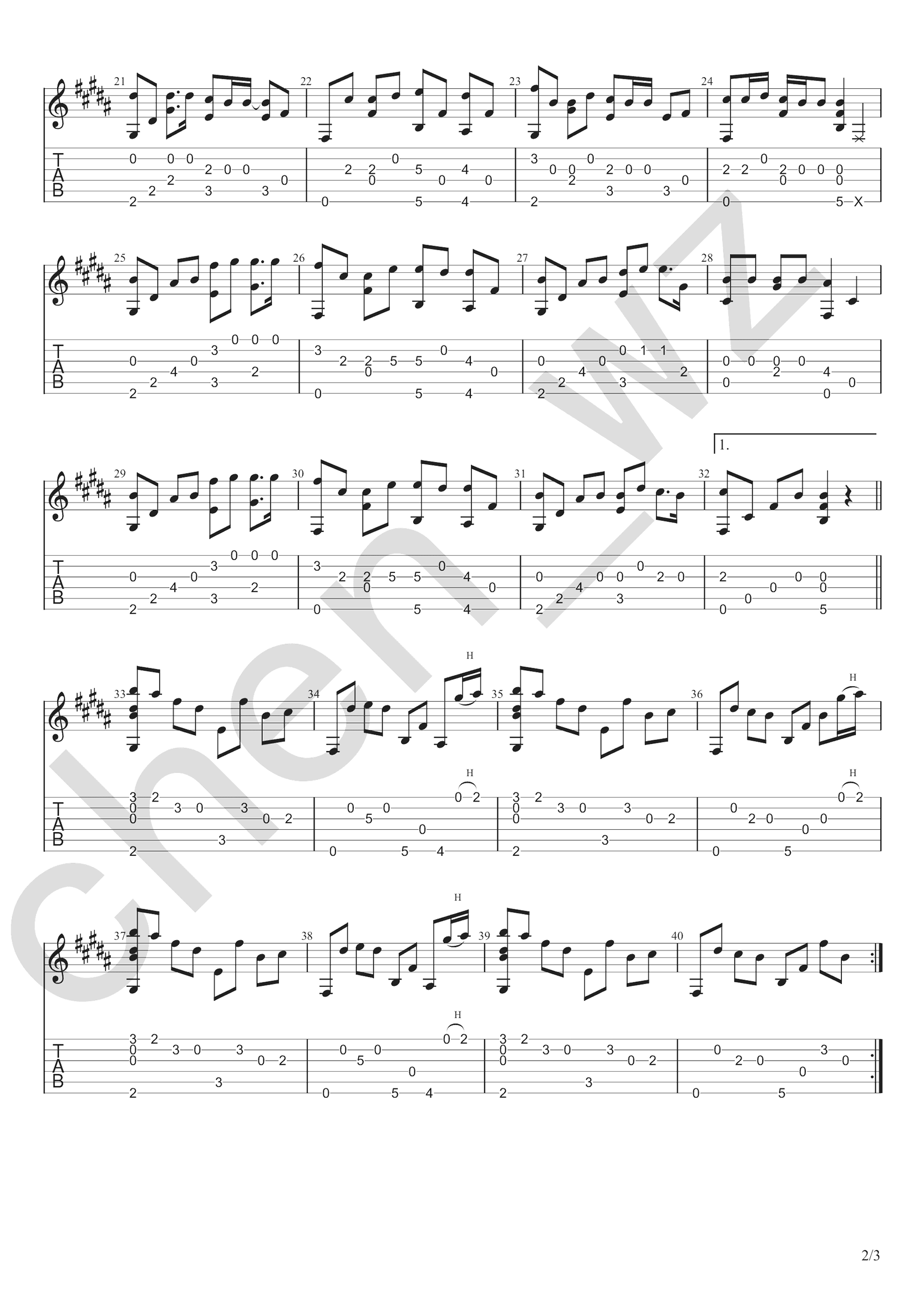 - 雪绒花指弹谱_音乐之声插曲_吉他独奏谱_高清版