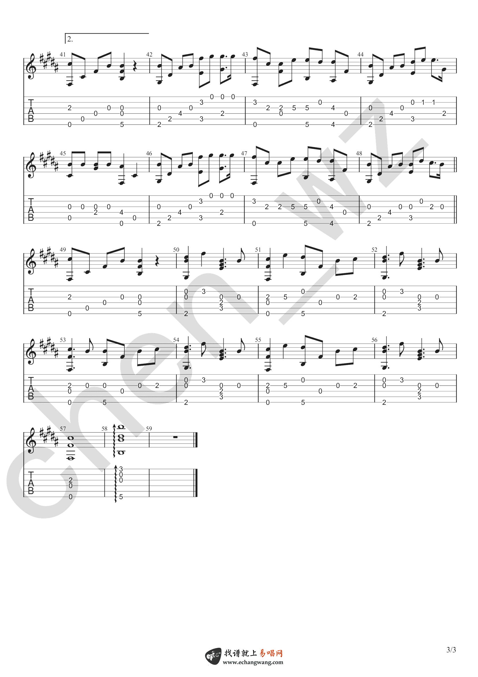- 梁祝指弹谱_梁山伯与祝英台_吉他独奏谱