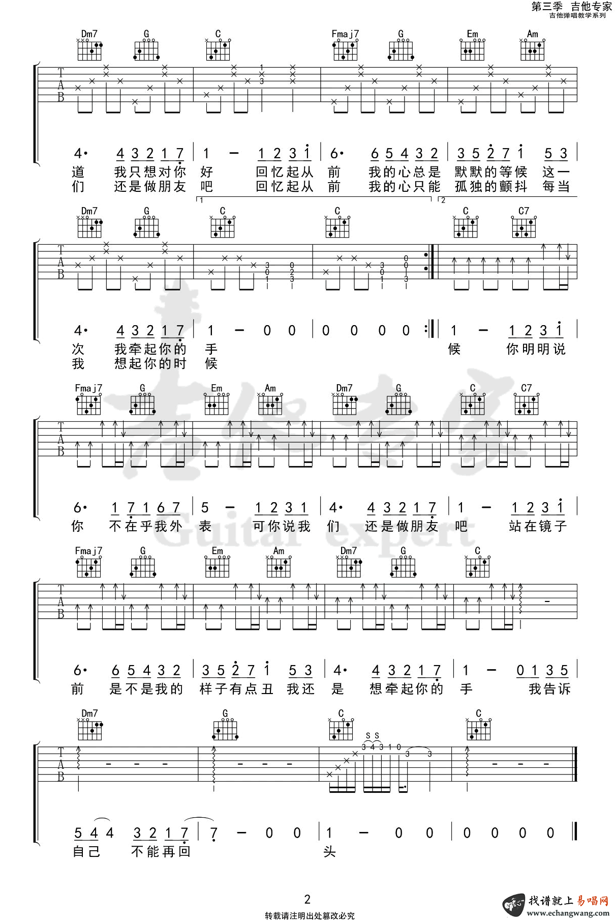 - 爱人错过吉他谱_告五人_C调原版_弹唱六线谱