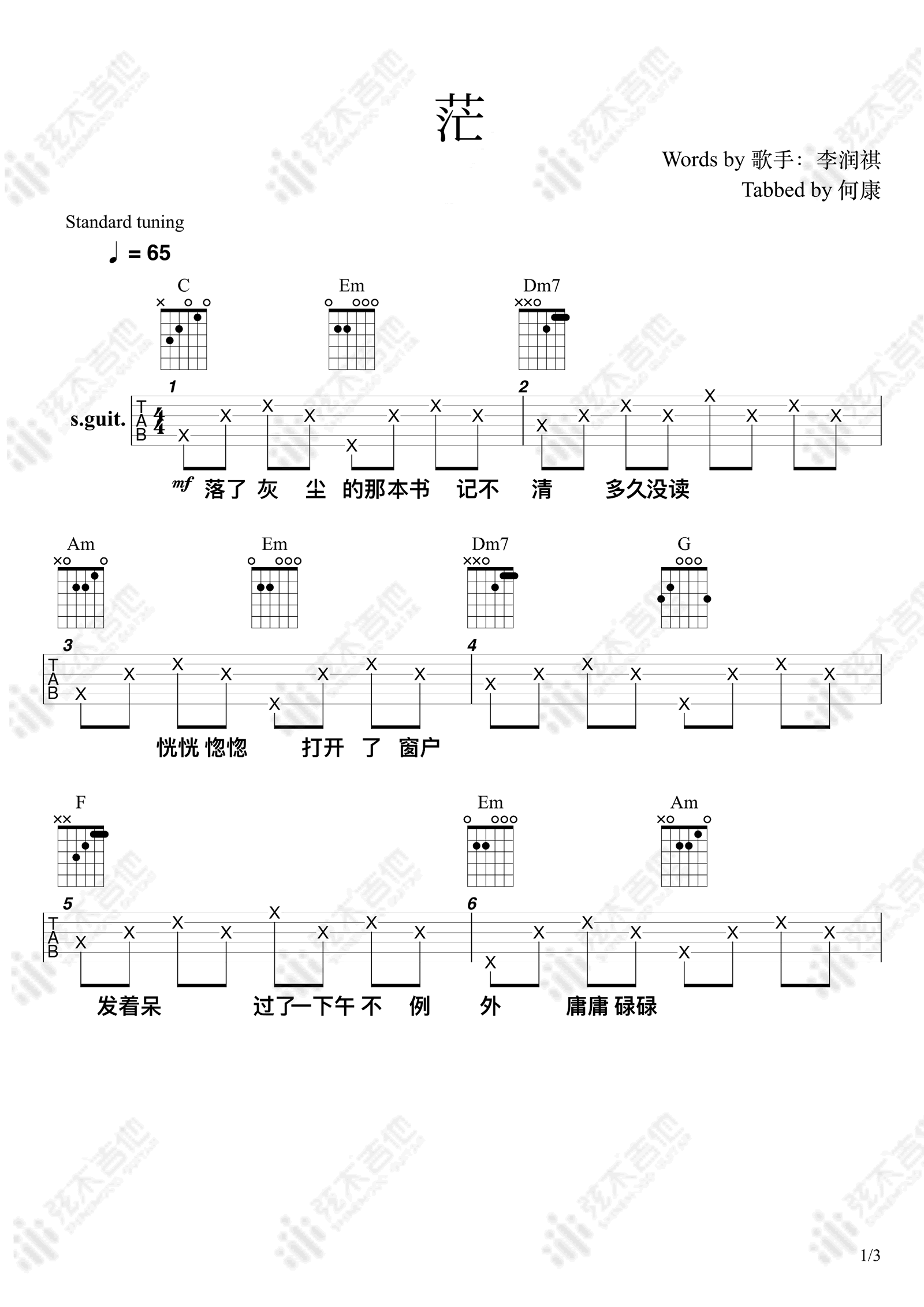 - 茫吉他谱_李润祺_C调简单版_高清弹唱谱