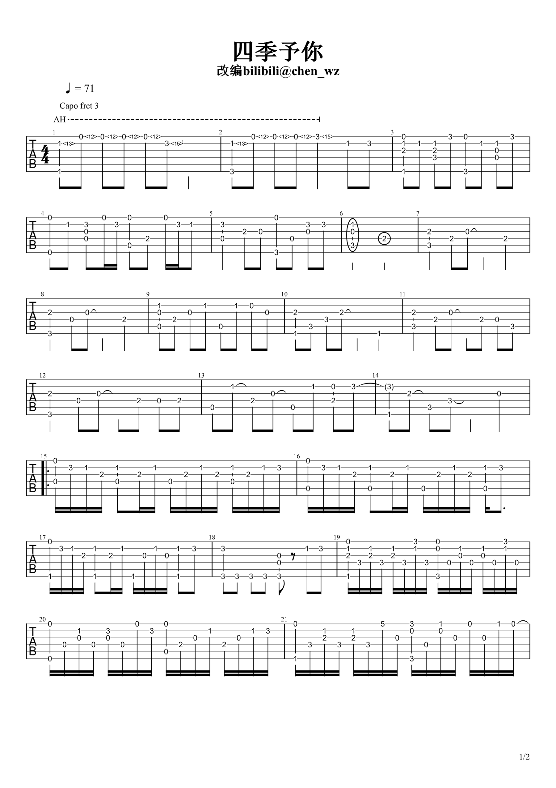 - 四季予你指弹谱_程响_吉他独奏谱_指弹演示视频