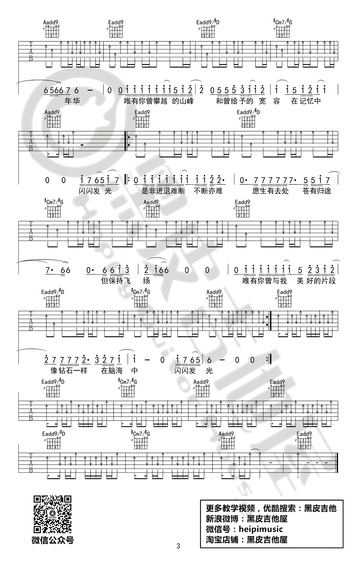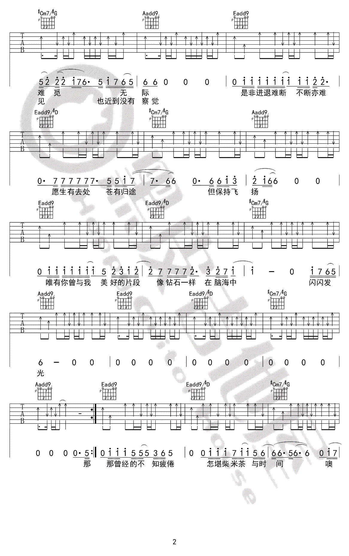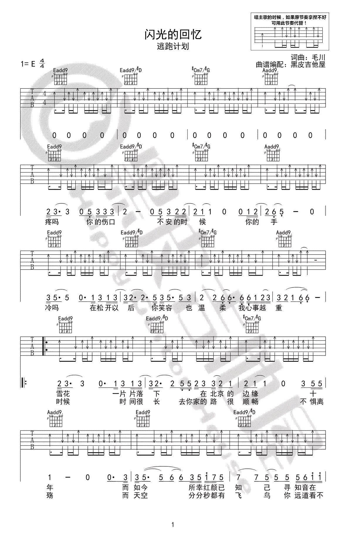 - 逃跑计划《闪光的回忆》吉他谱 C调原版六线谱 高清图片谱