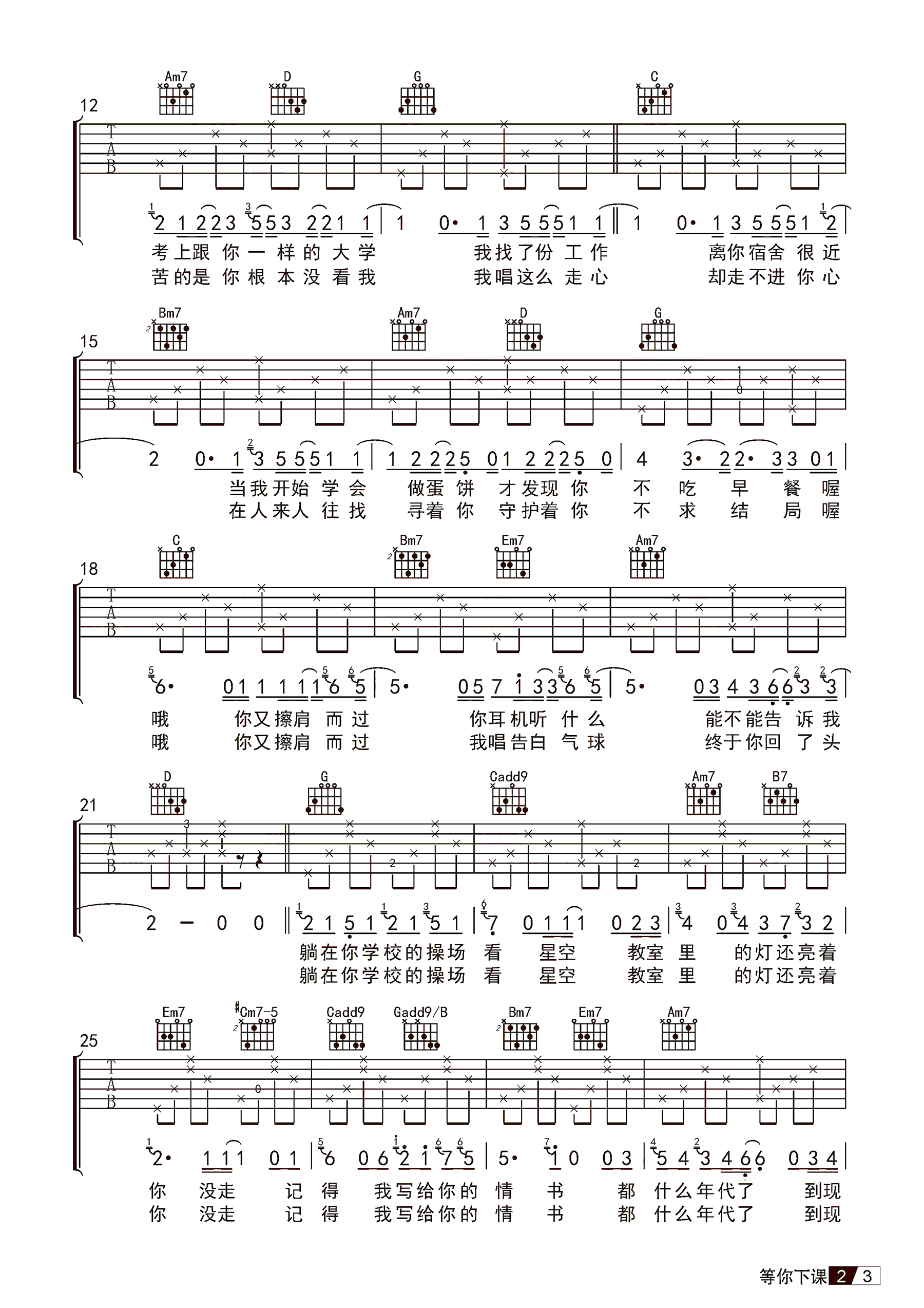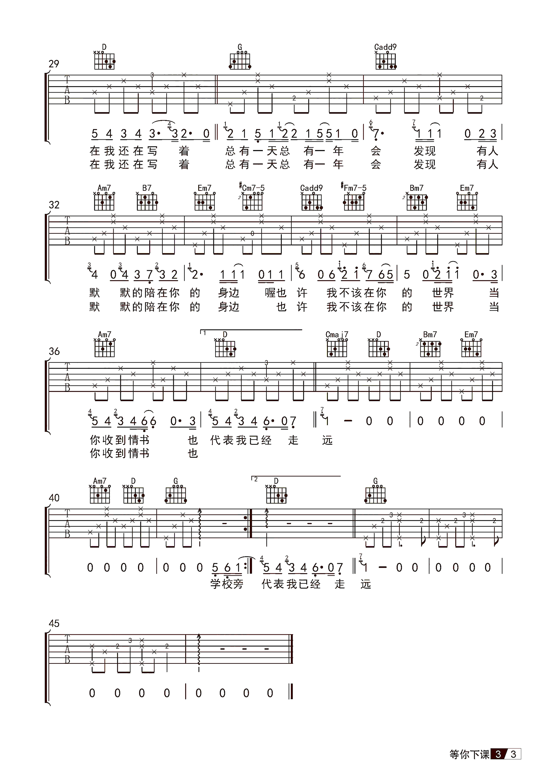 - 周杰伦 等你下课吉他谱 G调弹唱谱 高清六线谱