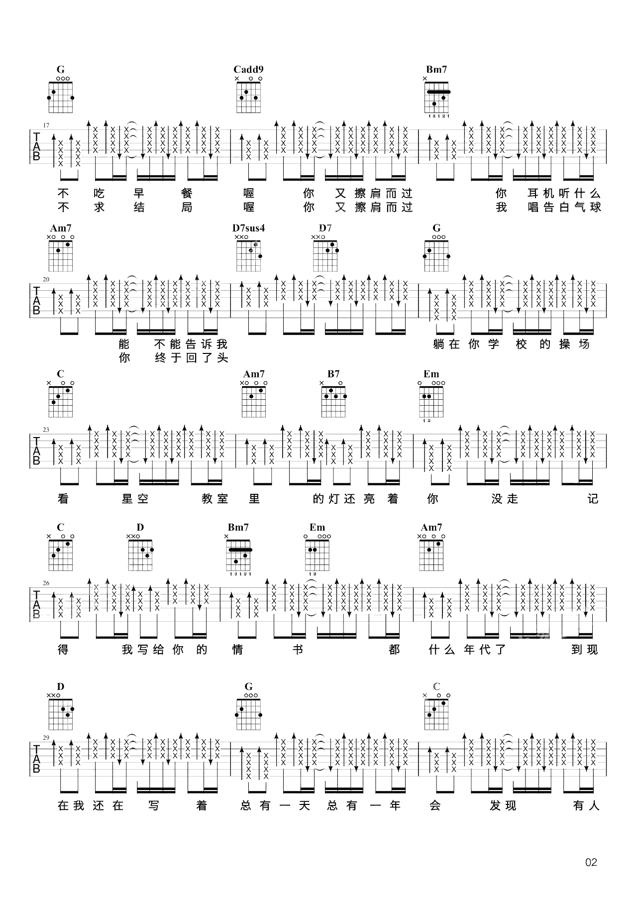 - 给我一首歌的时间吉他谱 周杰伦 六线谱弹唱谱