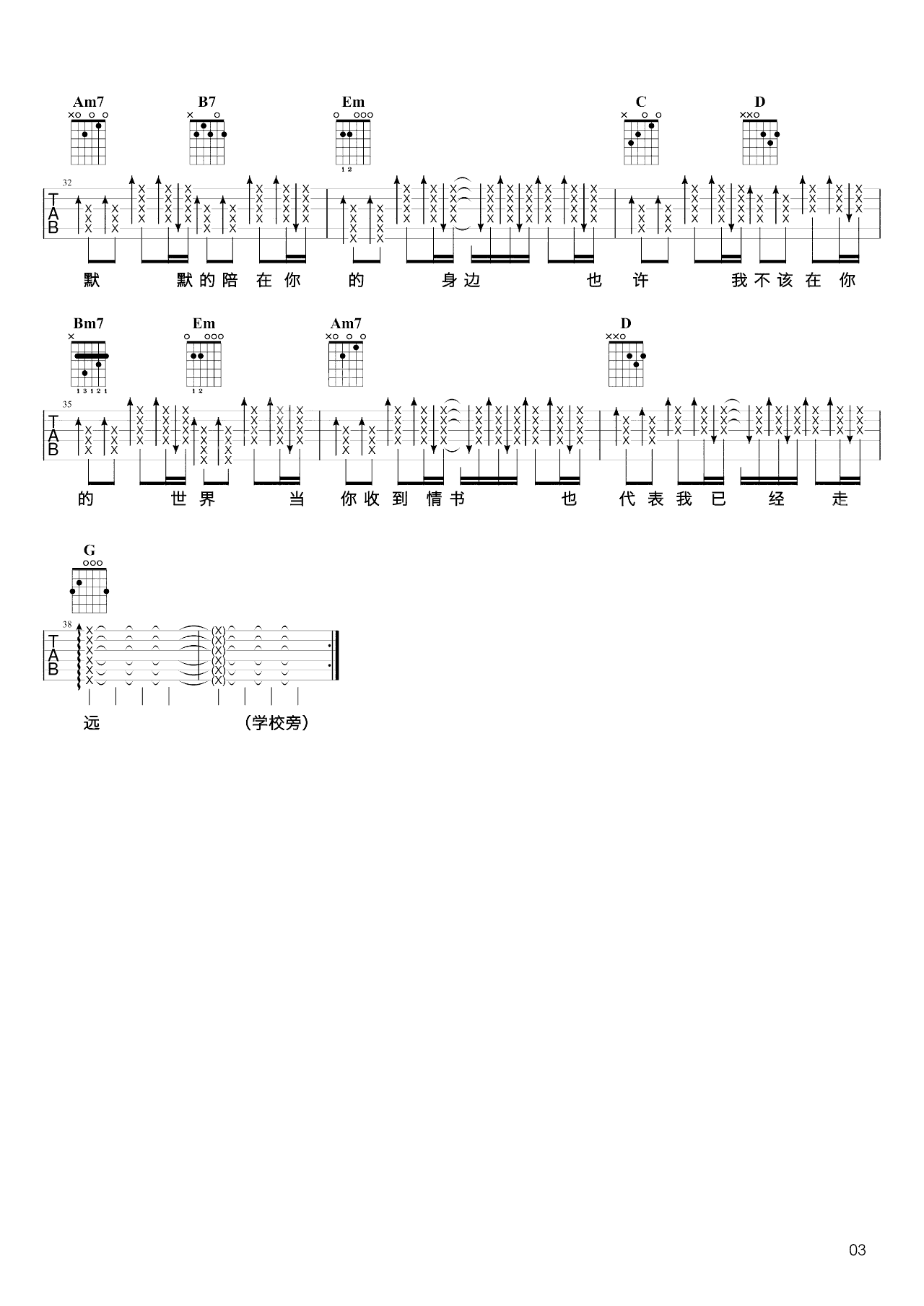 - 周杰伦 等你下课吉他谱 G调弹唱谱 高清六线谱