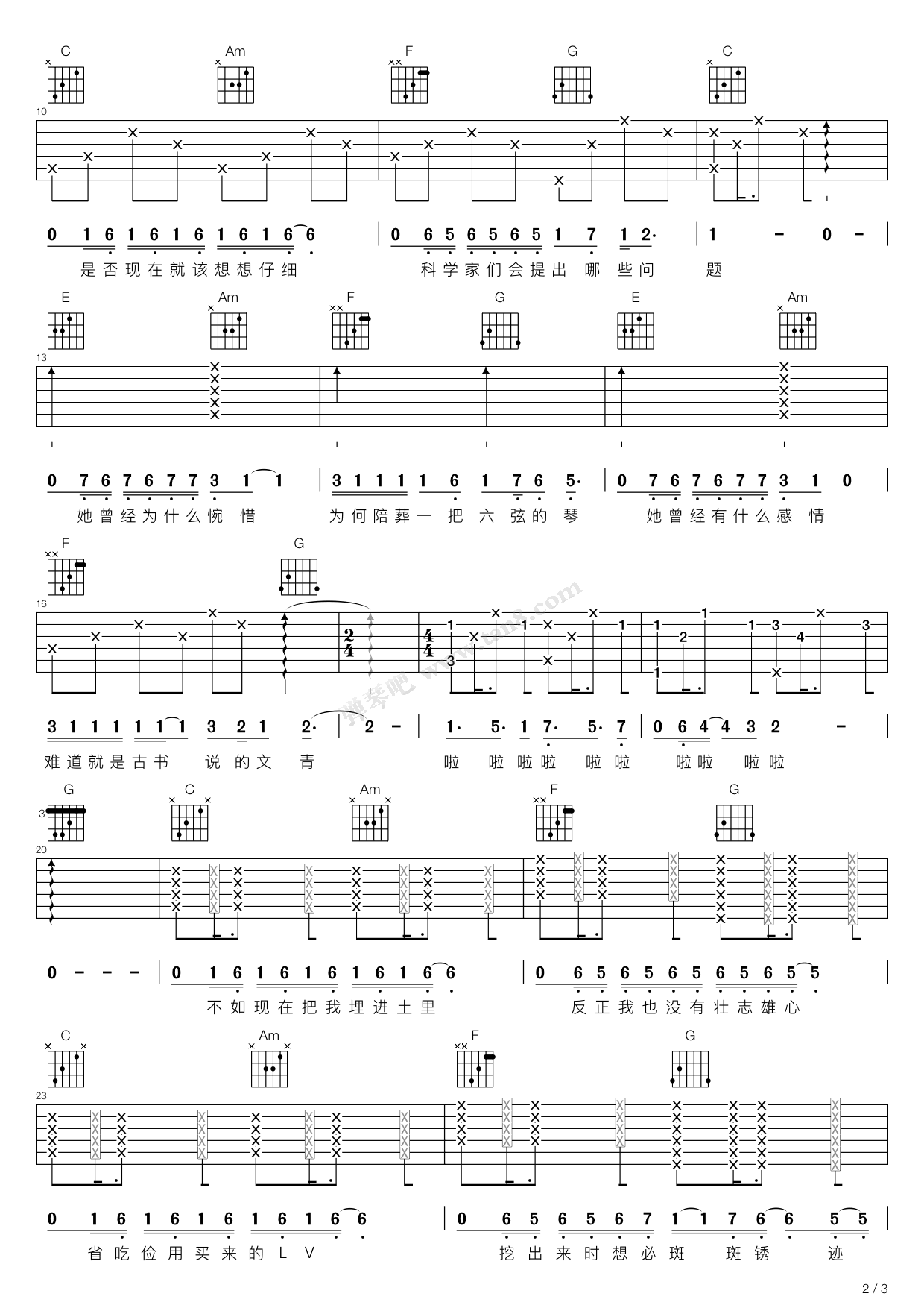 - 花枝春野吉他谱 不才 C调弹唱谱 高清图片谱