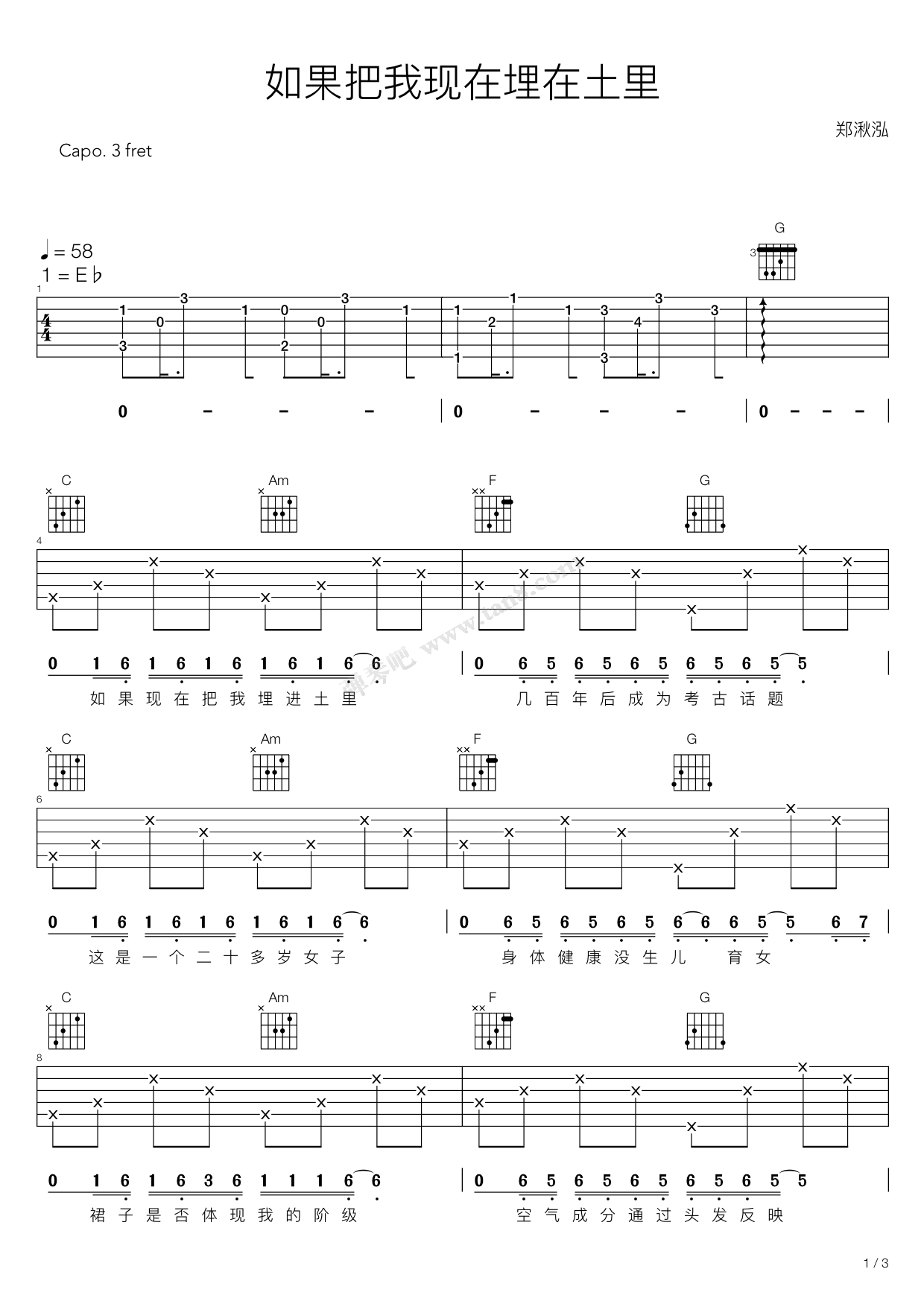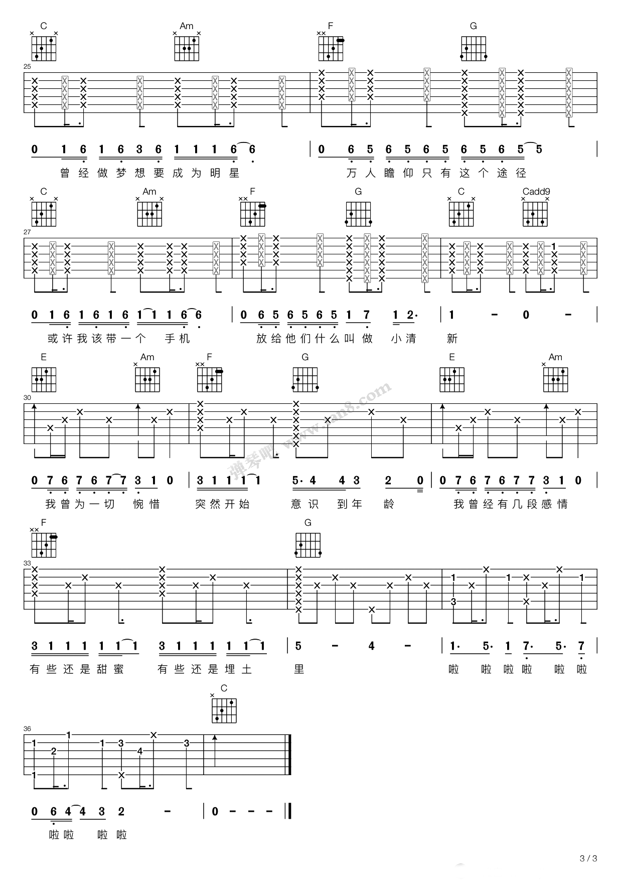 - 又吉他谱 mc天佑 G调弹唱谱 高清图片谱 《又》原版六线谱