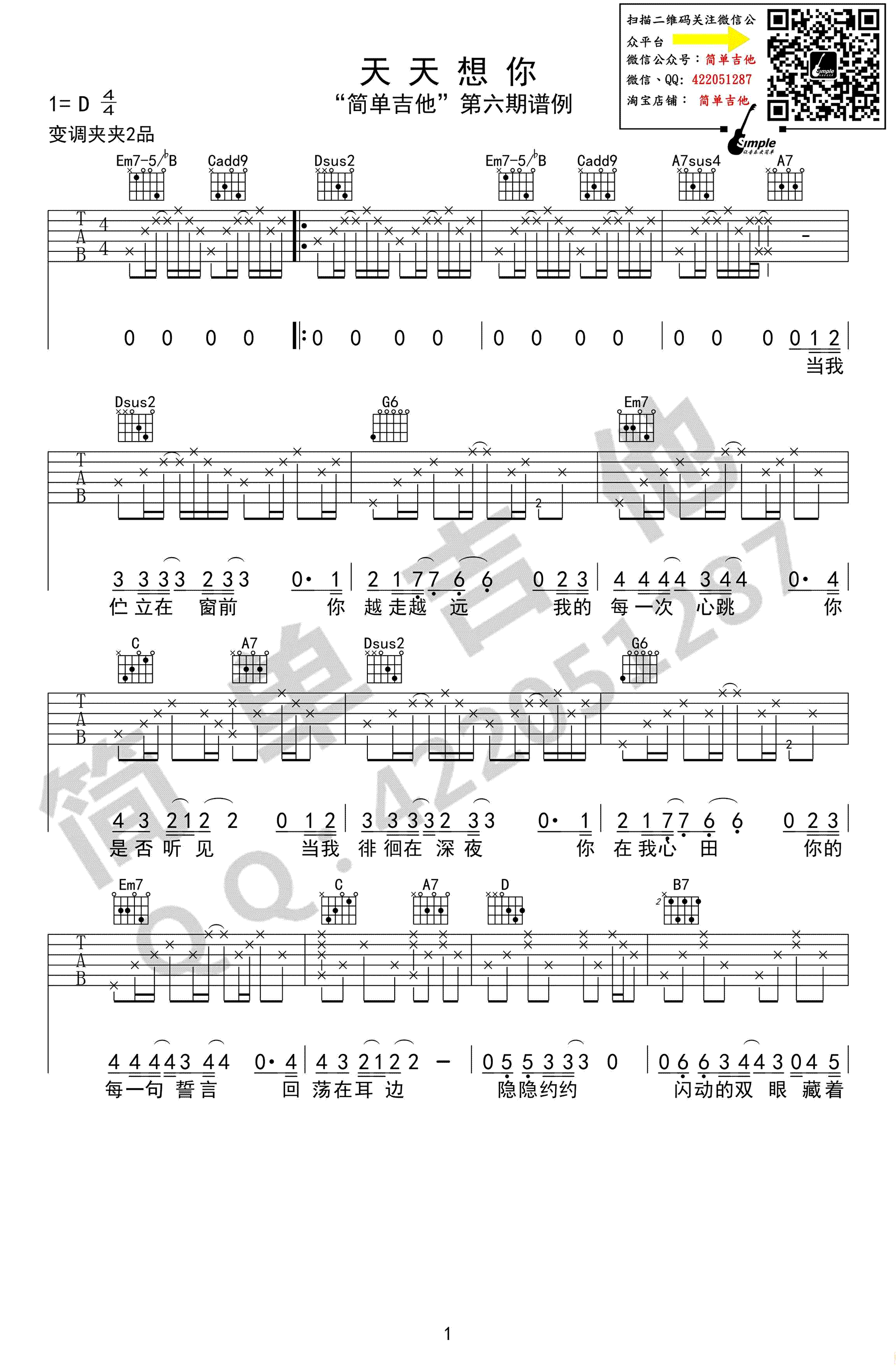 - 天天想你吉他谱女生版_陈绮贞_吉他弹唱教学视频