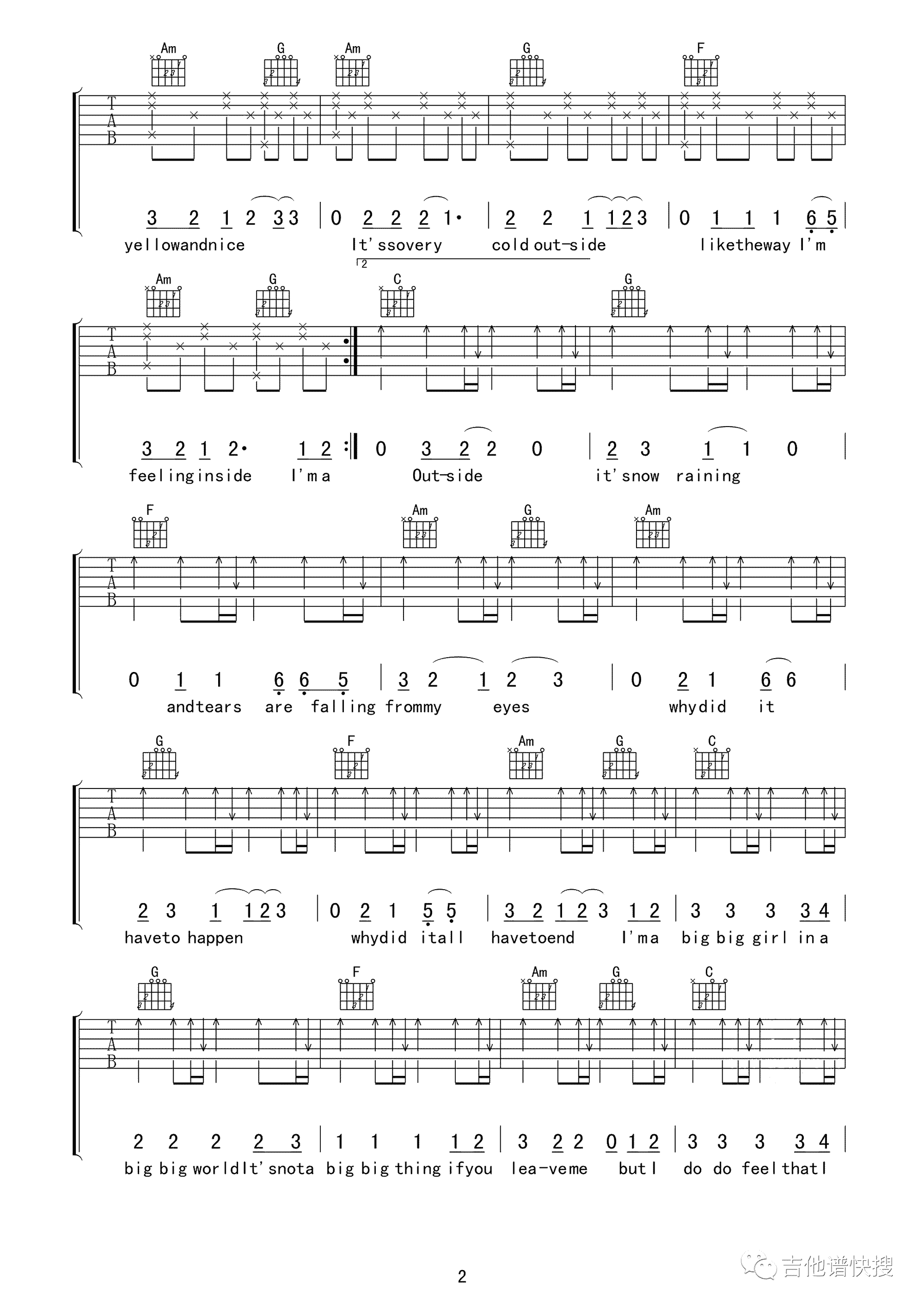 英文歌曲吉他谱
