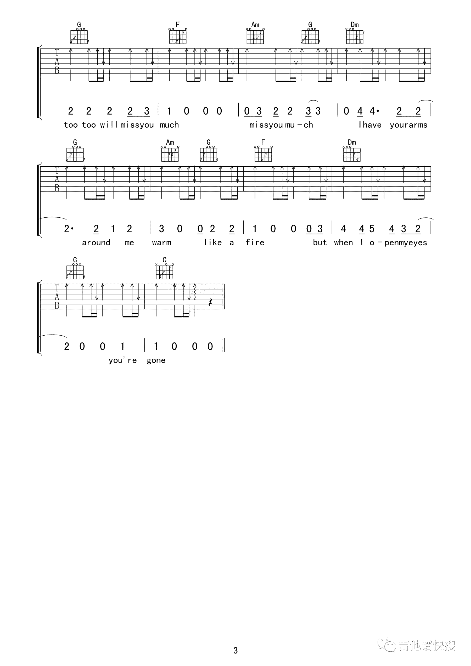 - You are my sunshine吉他谱 C调原版弹唱谱 高清图片谱
