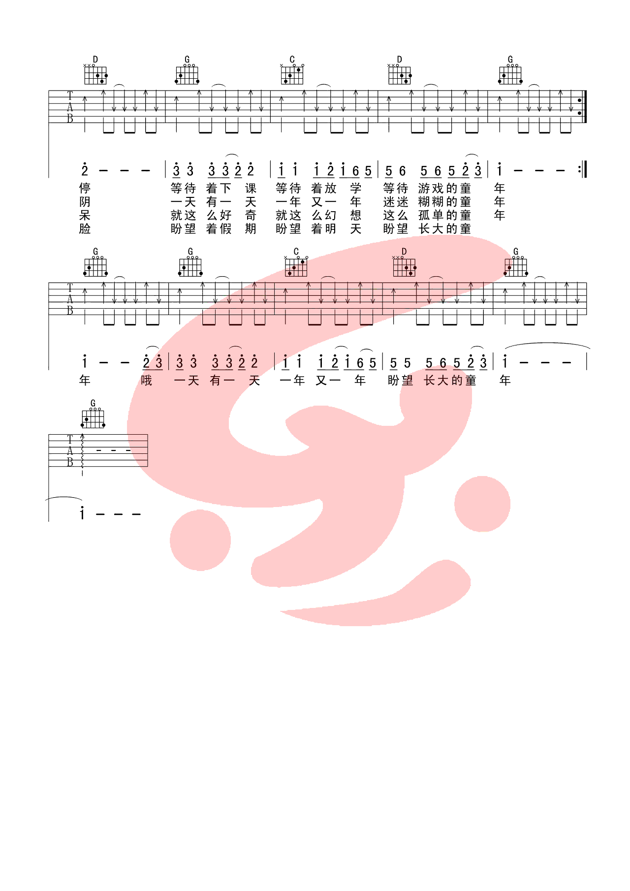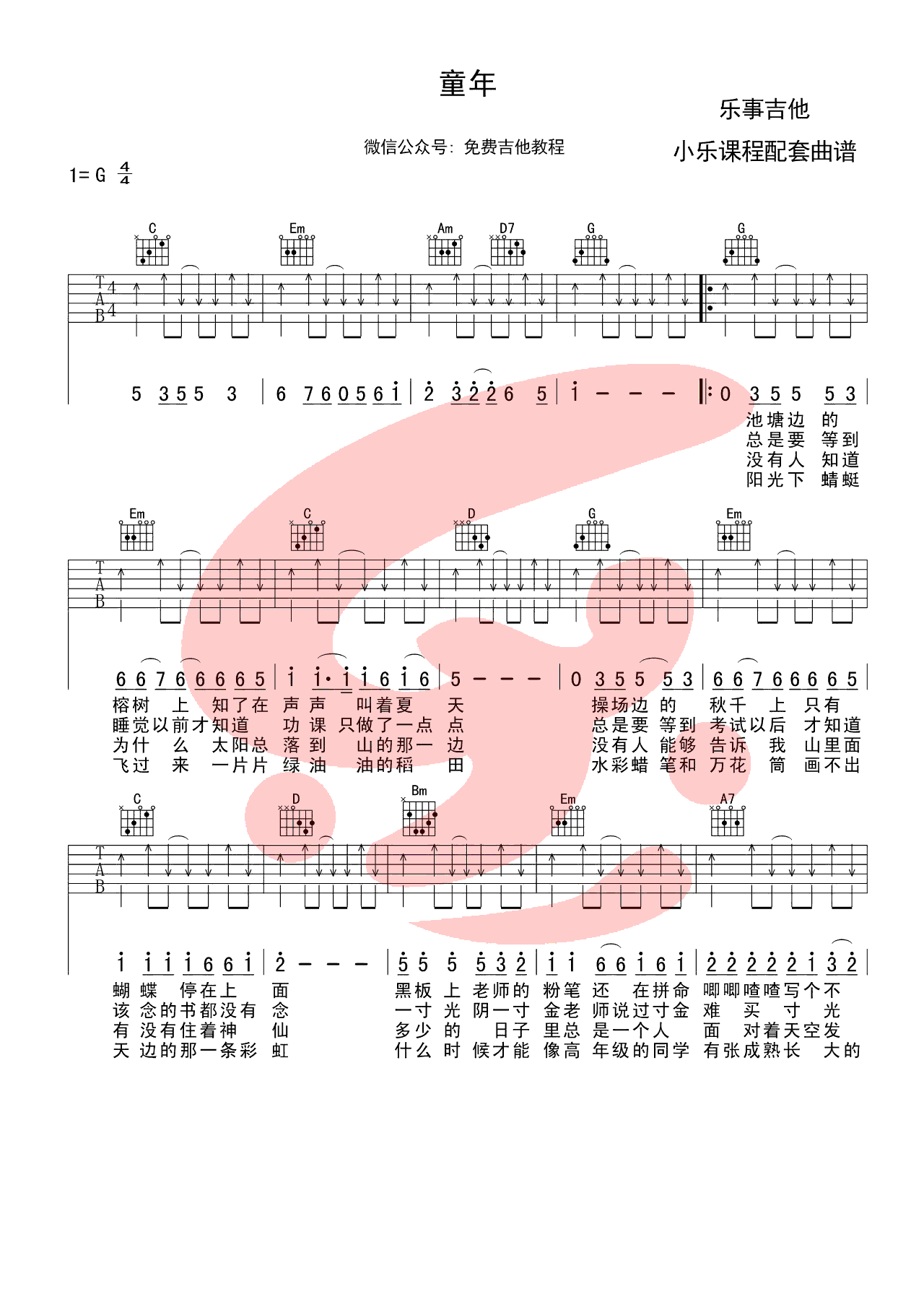 - 童年吉他谱 罗大佑 G调标准版 高清六线谱 弹唱教学视频