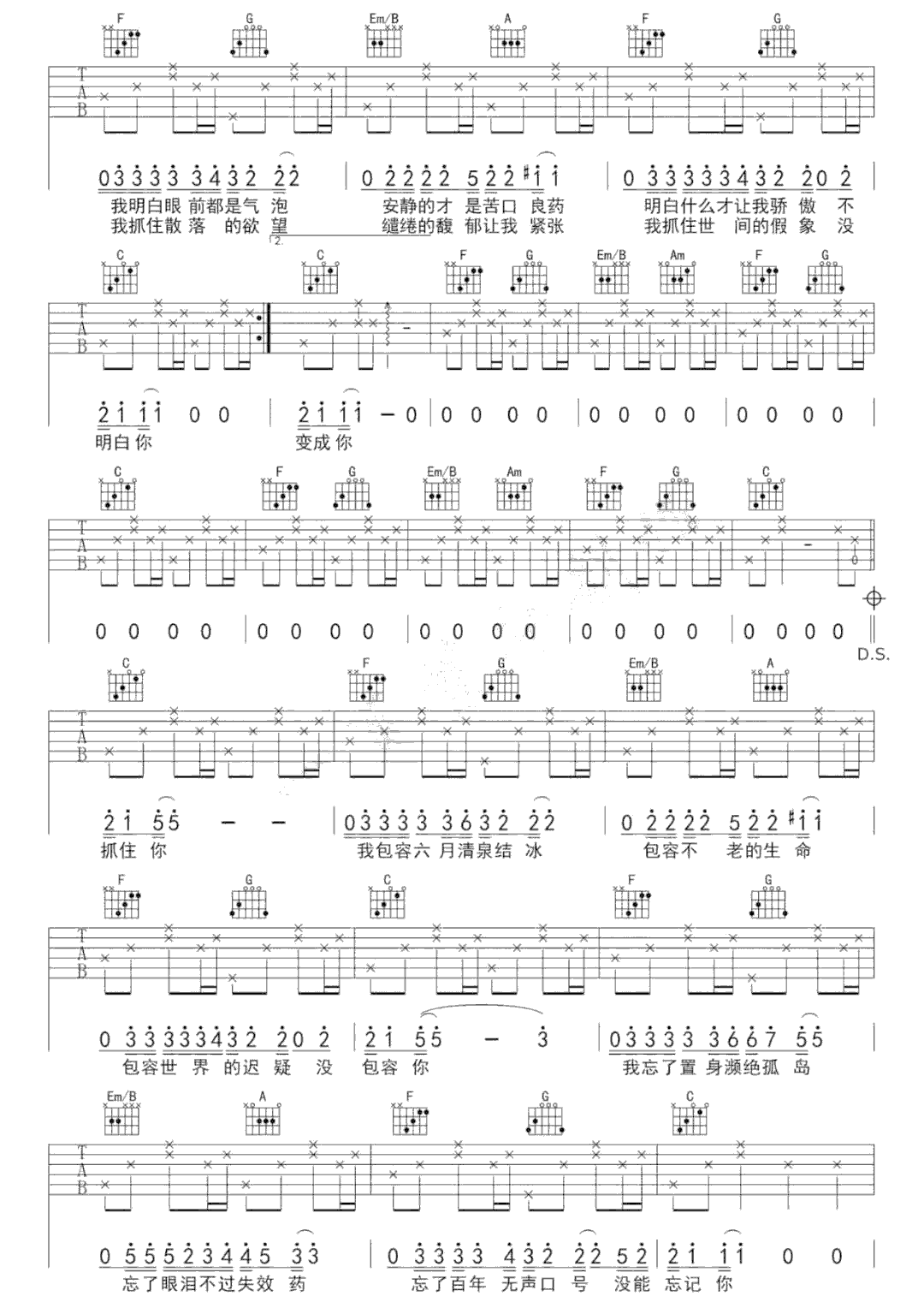 - 陈粒《桥豆麻袋》吉他谱 C调和弦谱 弹唱谱
