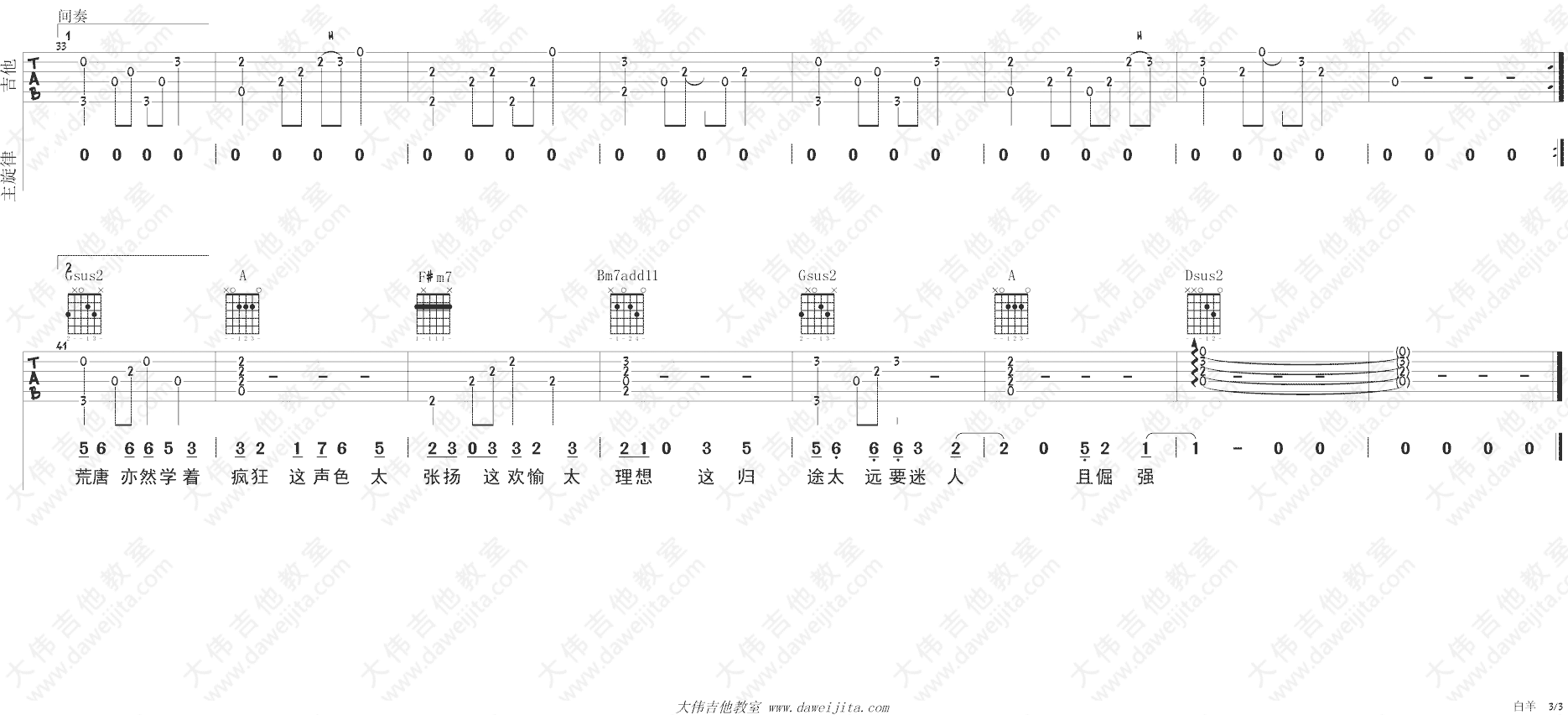 - 白羊吉他谱 徐秉龙&沈以诚 C调弹唱谱 吉他图片谱