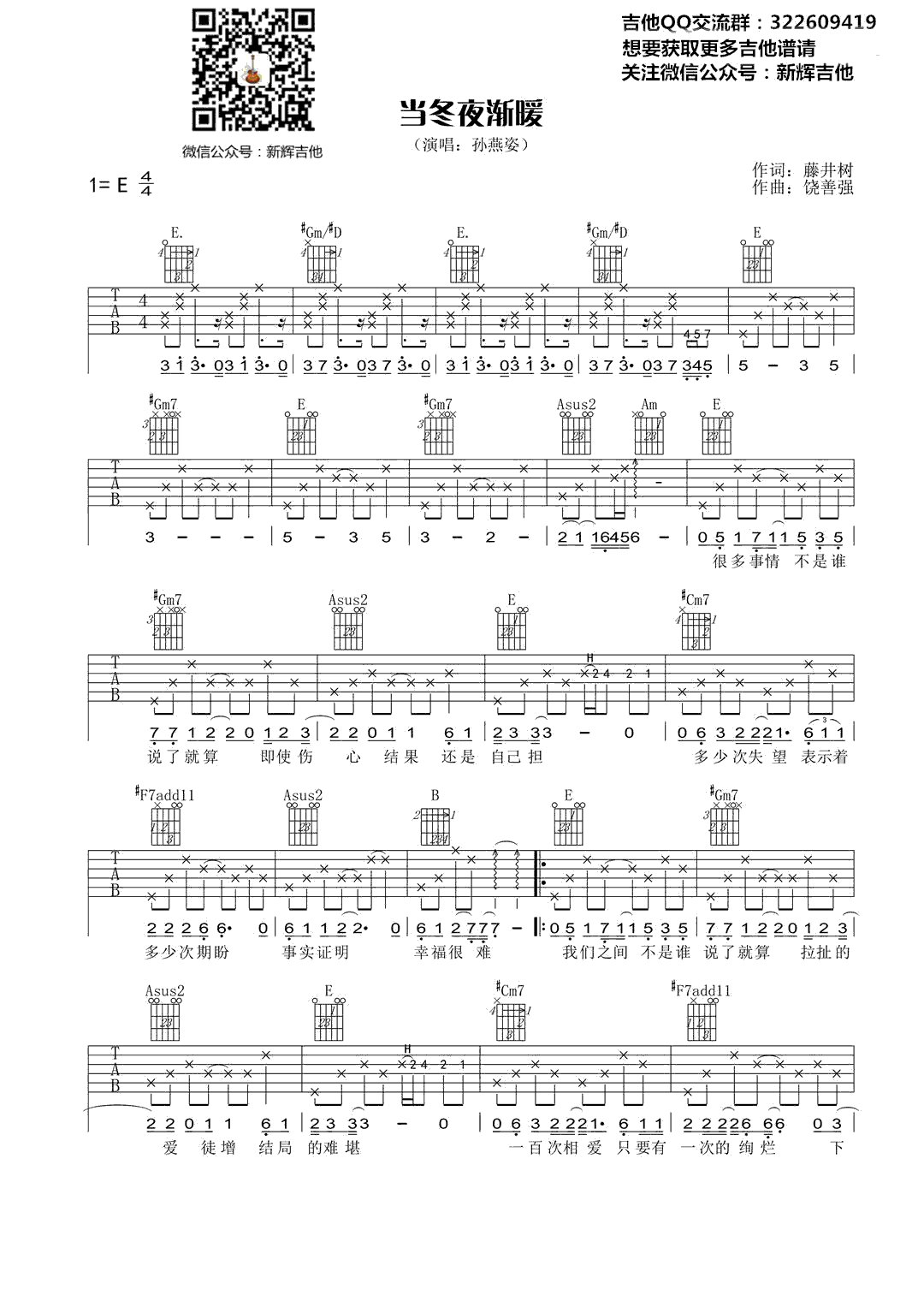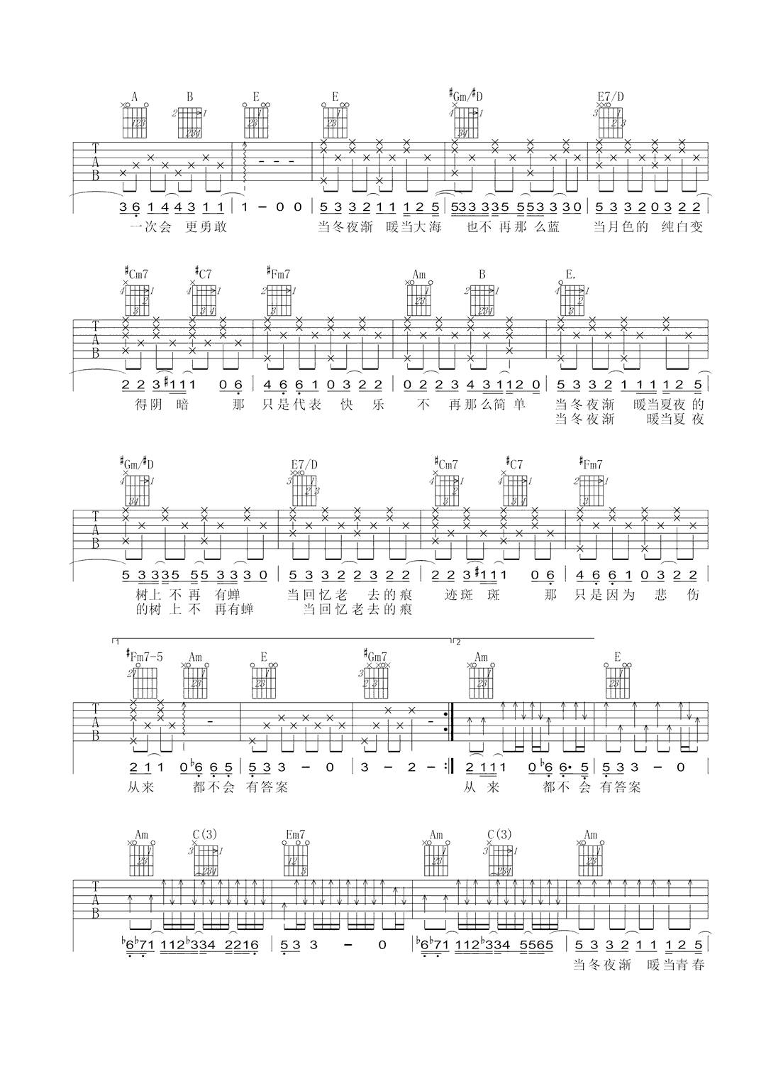 当冬夜渐暖 歌词 词:藤井树(吴子云) 曲:饶善强 编曲:Kenn C 很多事情不是谁说了就算 即使伤心结果还是自己担 多少次失望表示着多少次期盼 事实证明幸福很难 我们之间不是谁说了就算 拉扯的爱徒增结局的难堪 一百次相爱只要有一次的绚烂 下一次会更勇敢 当冬夜渐暖当大海也不再那么蓝 当月色的纯白变得阴暗 那只是代表快乐不再那么简单 当冬夜渐暖当夏夜的树上不再有蝉 当回忆老去的痕迹斑斑 那只是因为悲伤从来都不会有答案 我们之间不是谁说了就算 拉扯的爱徒增结局的难堪 一百次相爱只要有一次的绚烂 下一次会更勇敢 当冬夜渐暖当大海也不再那么蓝 当月色的纯白变得阴暗 那只是代表快乐不再那么简单 当冬夜渐暖当夏夜的树上不再有蝉 当回忆老去的痕迹斑斑 那只是因为悲伤从来都不会有答案 当冬夜渐暖当青春也都烟消云散 当美丽的故事都有遗憾 那只是习惯把爱当作喜欢 重要的是我们如何爱过那一段