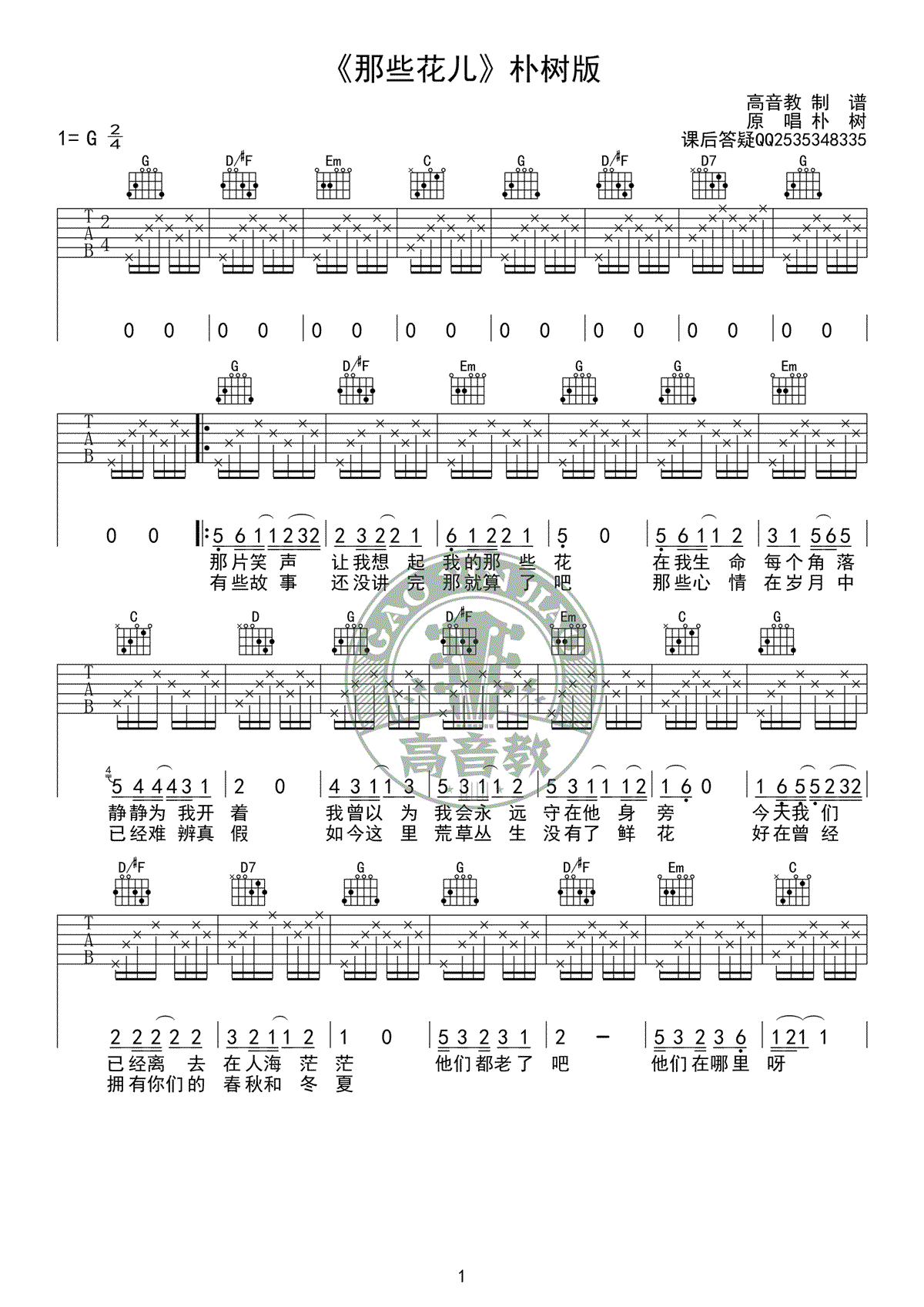 - 那些花儿吉他谱_朴树_吉他弹唱谱_G调