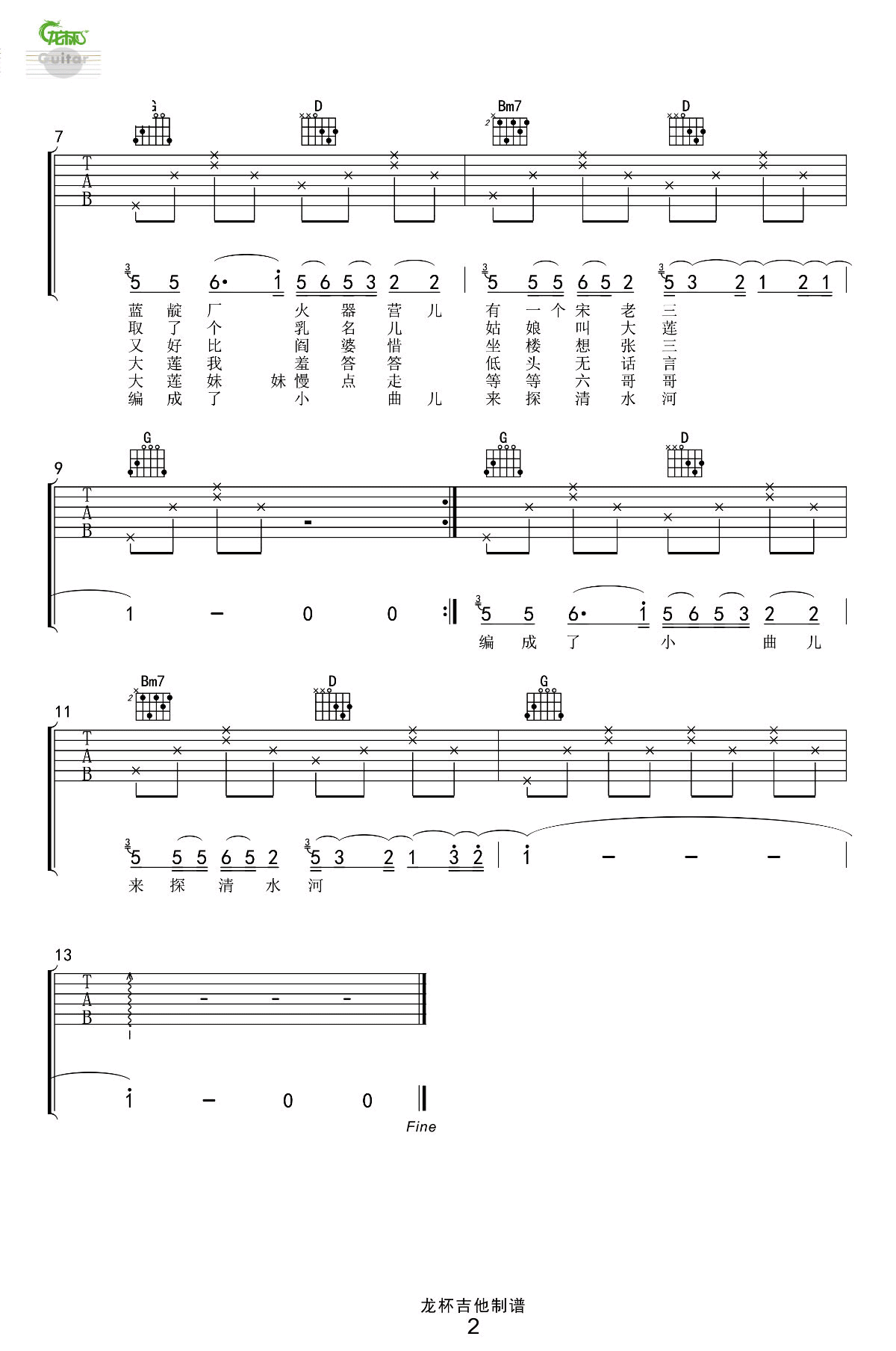 - Little Song吉他谱 向日葵乐队 G调弹唱谱 手写六线谱