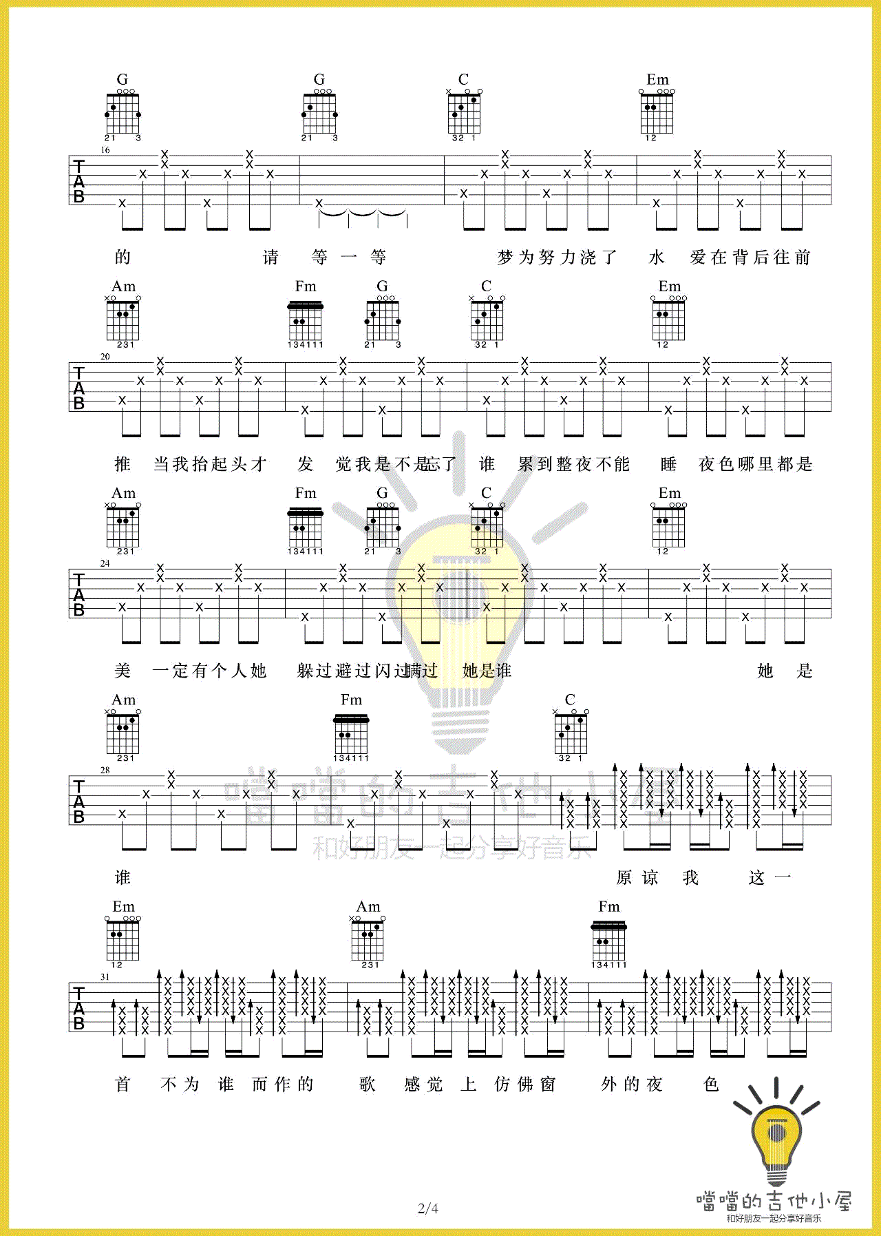- 爱笑的眼睛吉他谱_林俊杰_C调简单弹唱谱