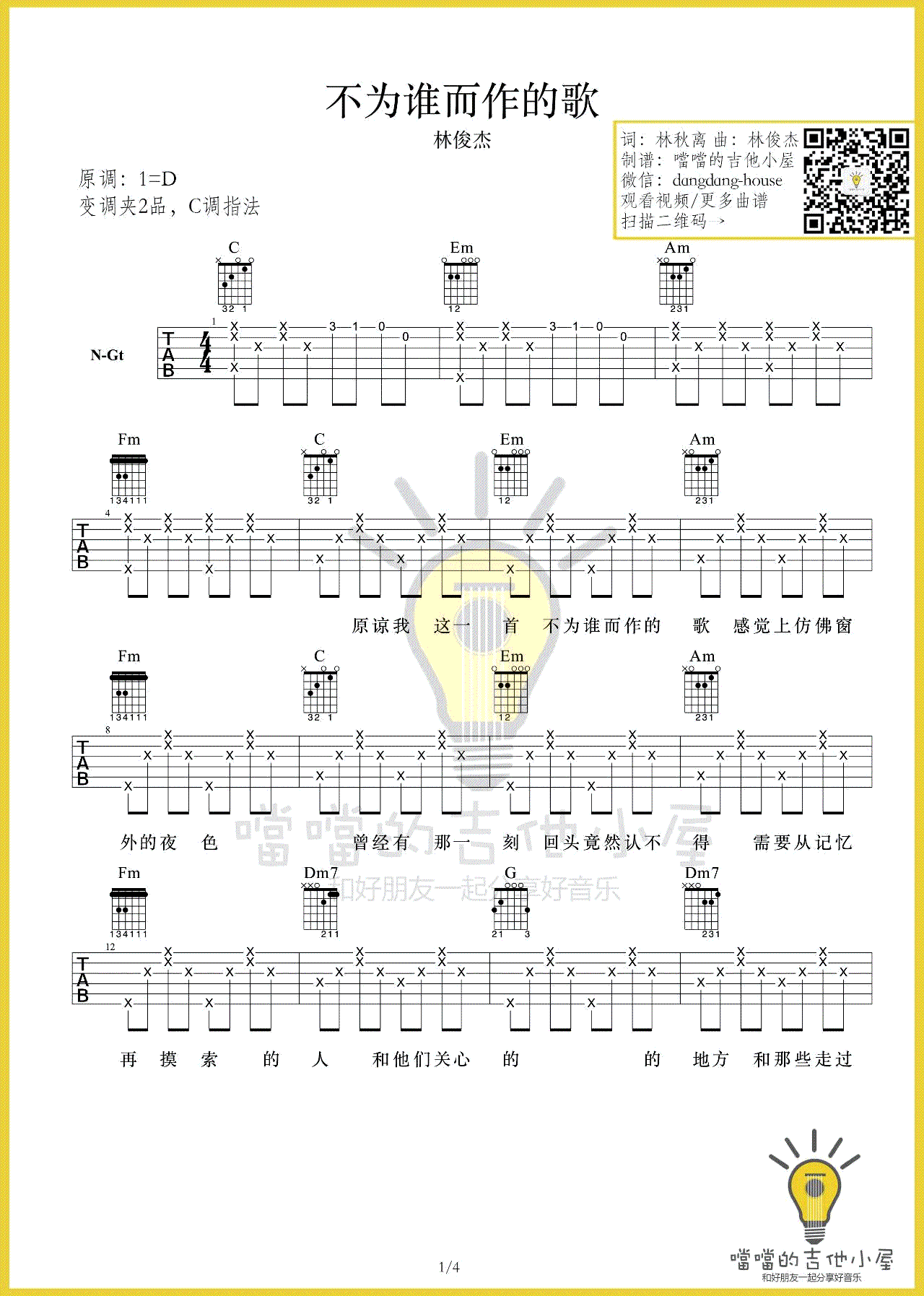 - 不为谁而作的歌吉他谱 林俊杰 C调弹唱谱