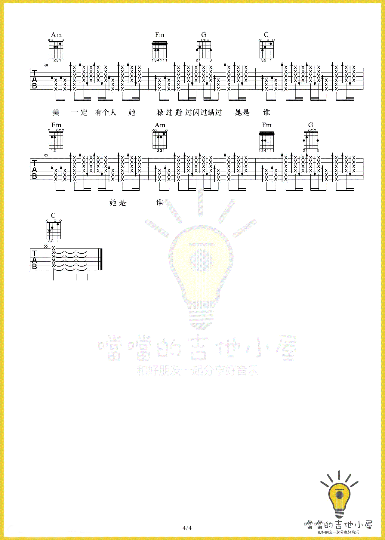 - 她说吉他谱 林俊杰 高清弹唱谱 《她说》吉他教学视频