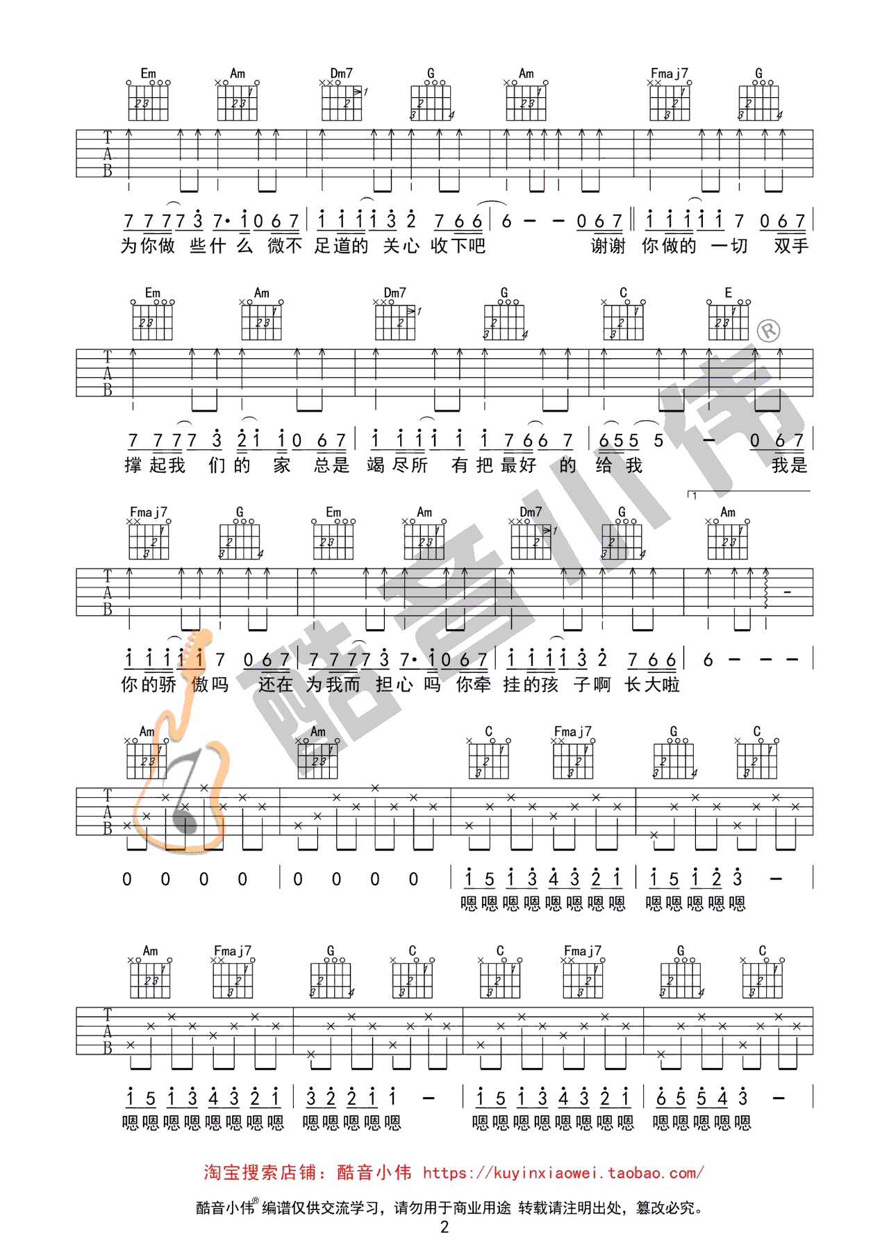 父亲吉他谱,C调指法简单版,筷子兄弟演唱,父亲吉他弹唱谱,三张图片六线谱,男生变调夹夹0到4品,女生变调夹不夹。感谢的酷音小伟编配和提供,易唱网上传,欢迎吉他爱好者收藏分享。