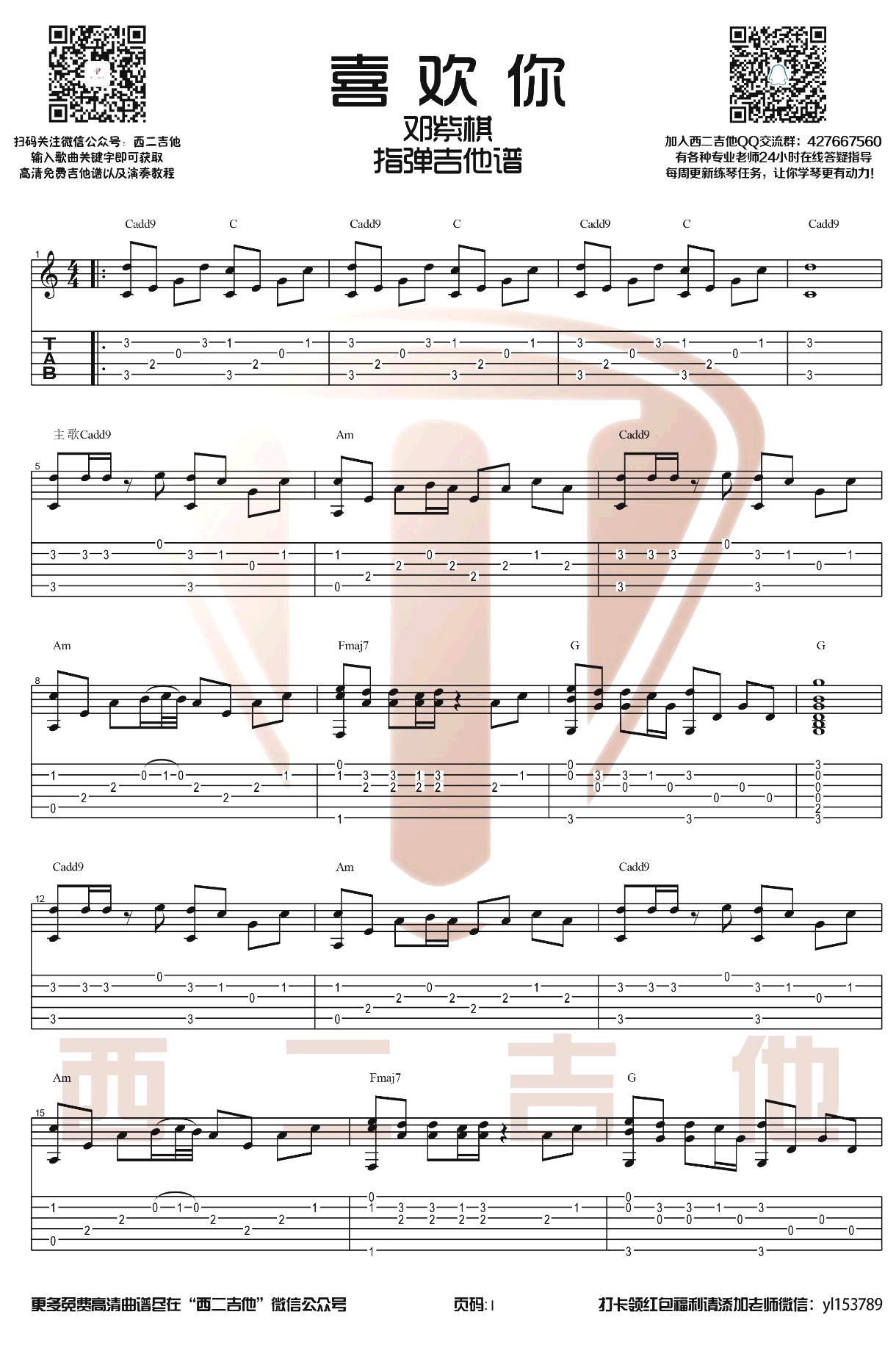 - 老齐吉他谱 齐一 E调弹唱谱 高清六线谱