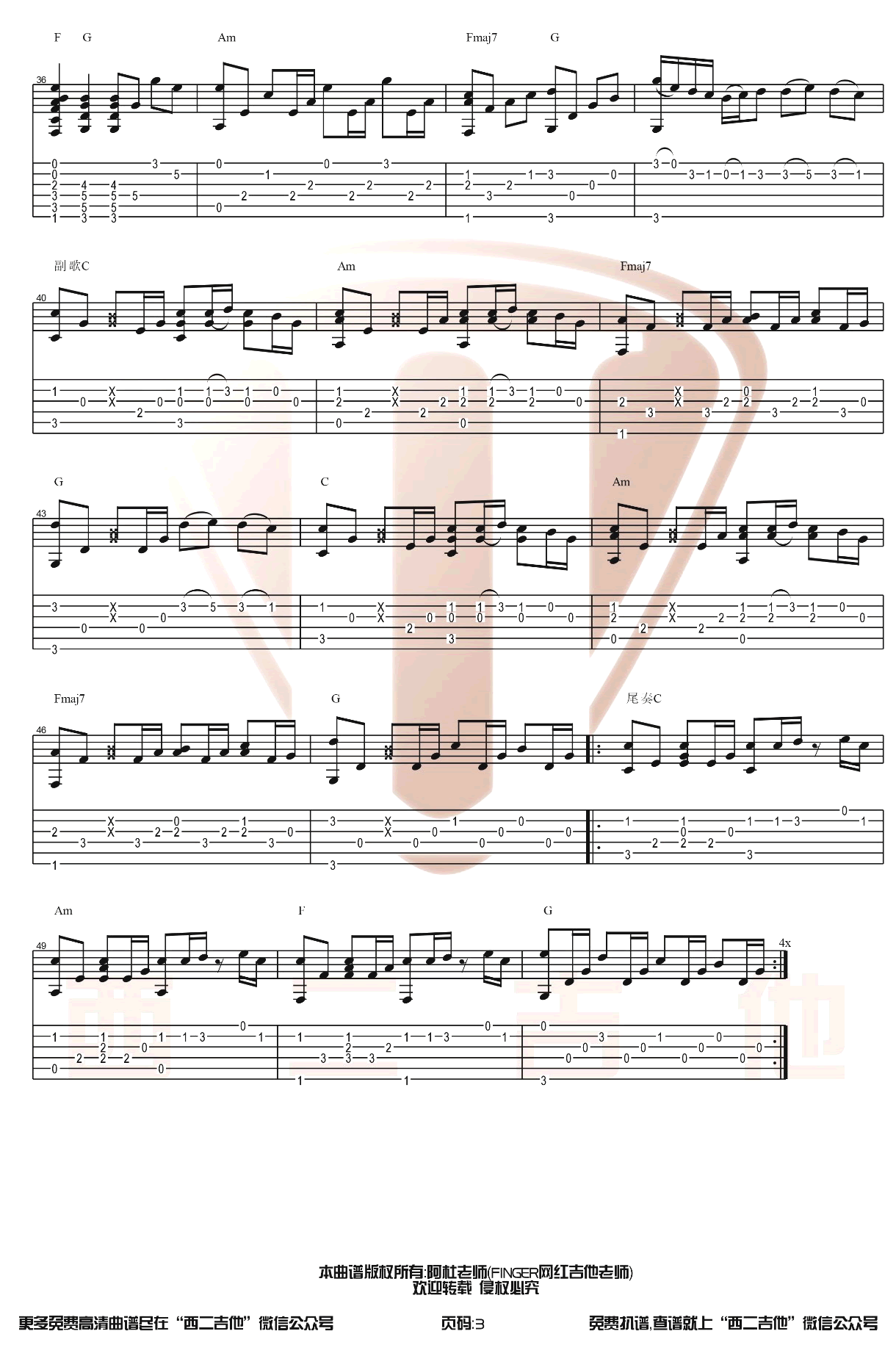 热门吉他谱(图片谱)