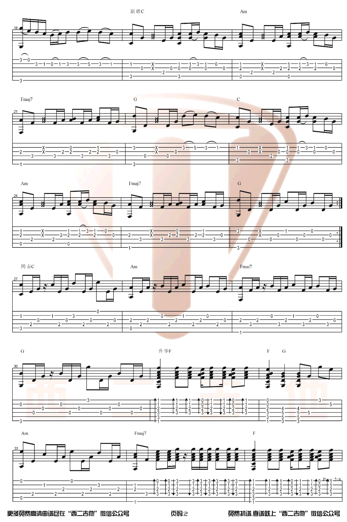 - 小猪佩奇指弹谱 吉他独奏谱 《粉红猪小妹》主题曲