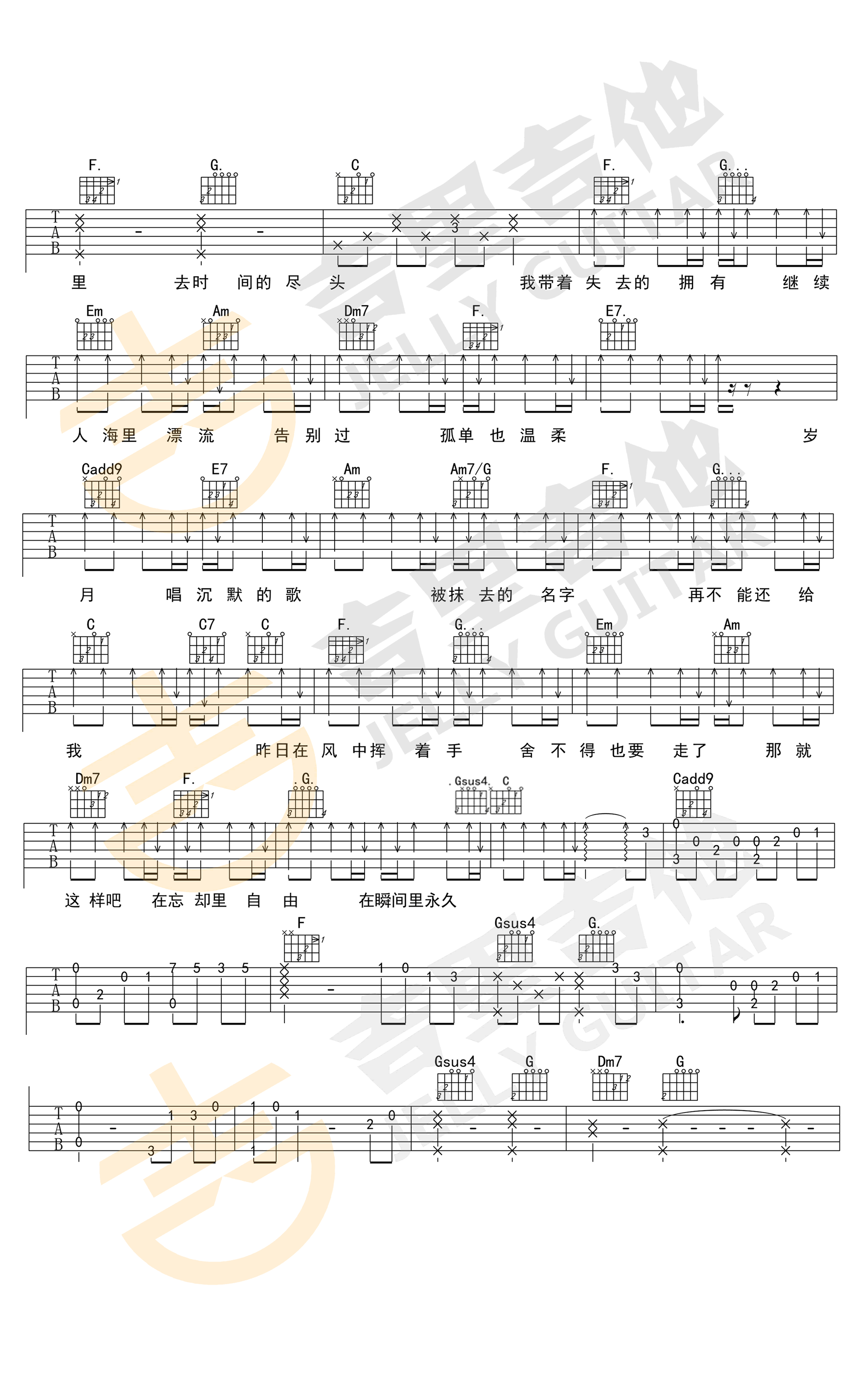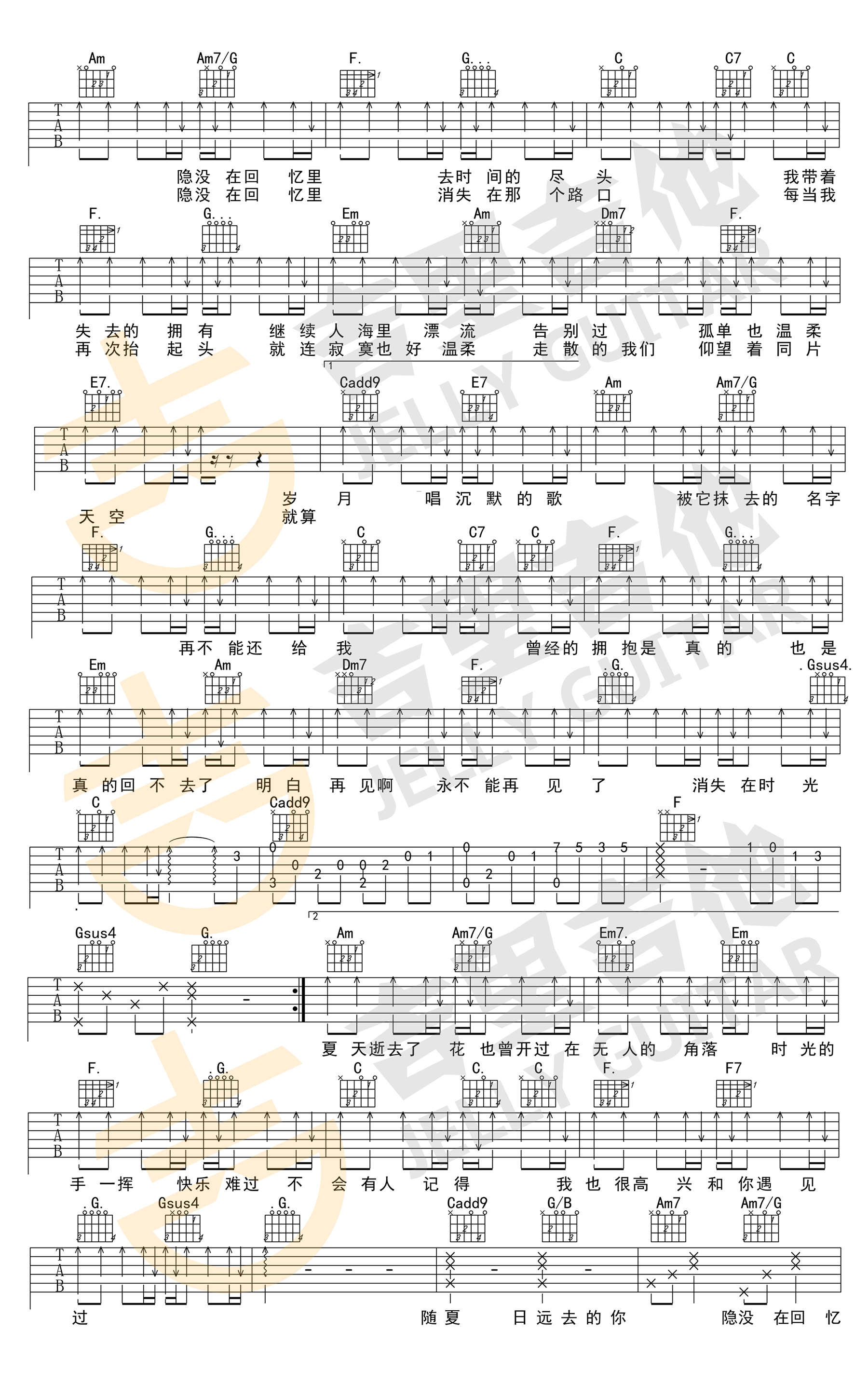 - 汪苏泷《忽而今夏》吉他谱_C调入门版_弹唱谱