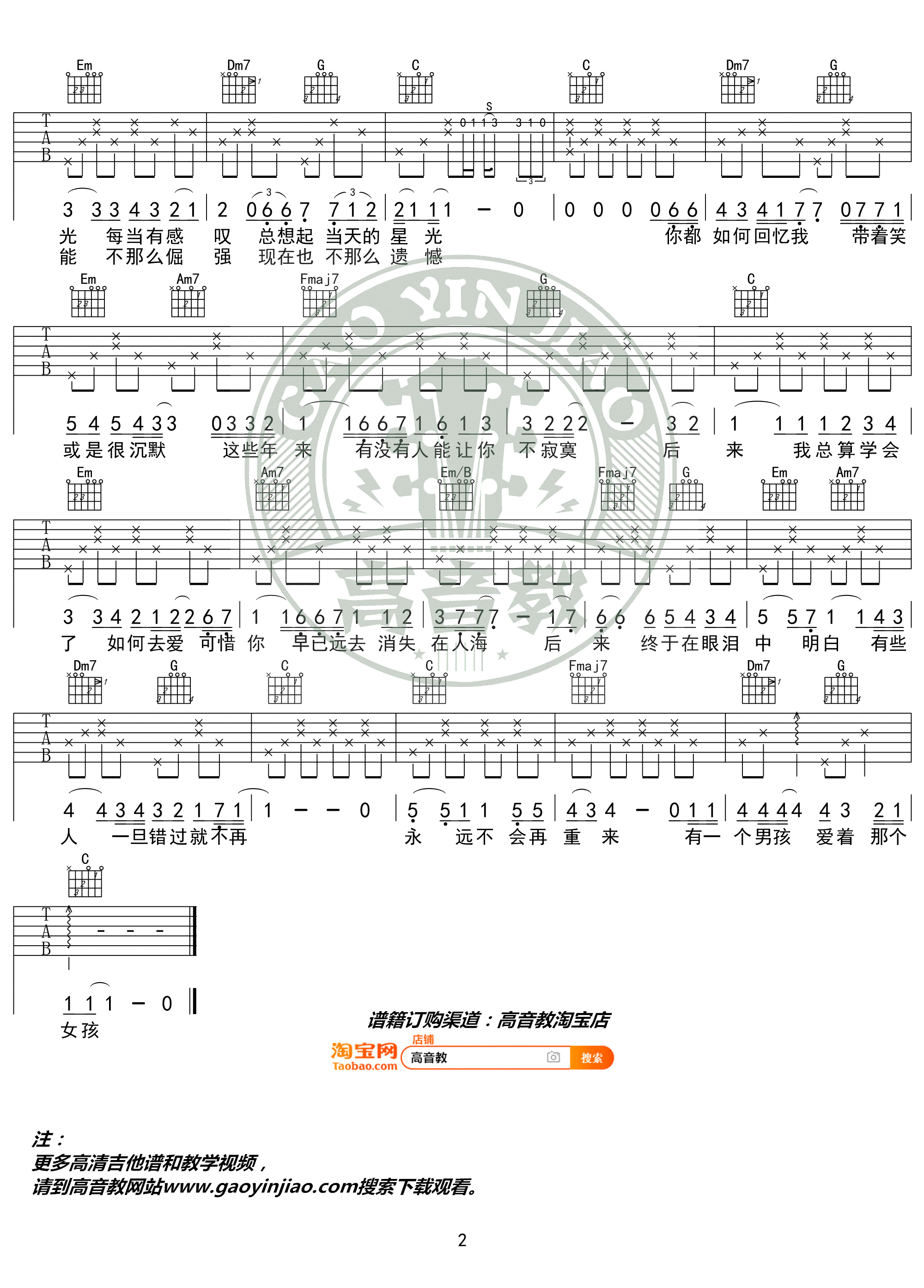 - 追光者吉他谱 C调弹唱谱 岑宁儿《追光者》六线谱