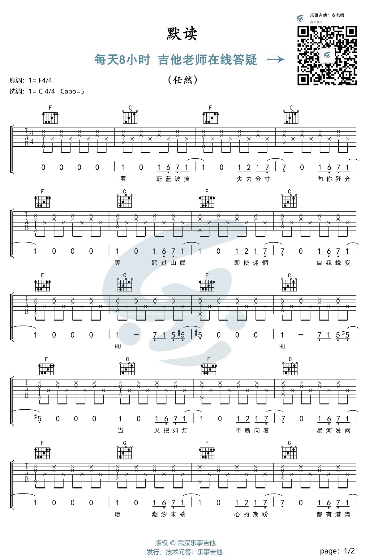 - 很任性吉他谱 千百顺 C调六线谱 高清完整版