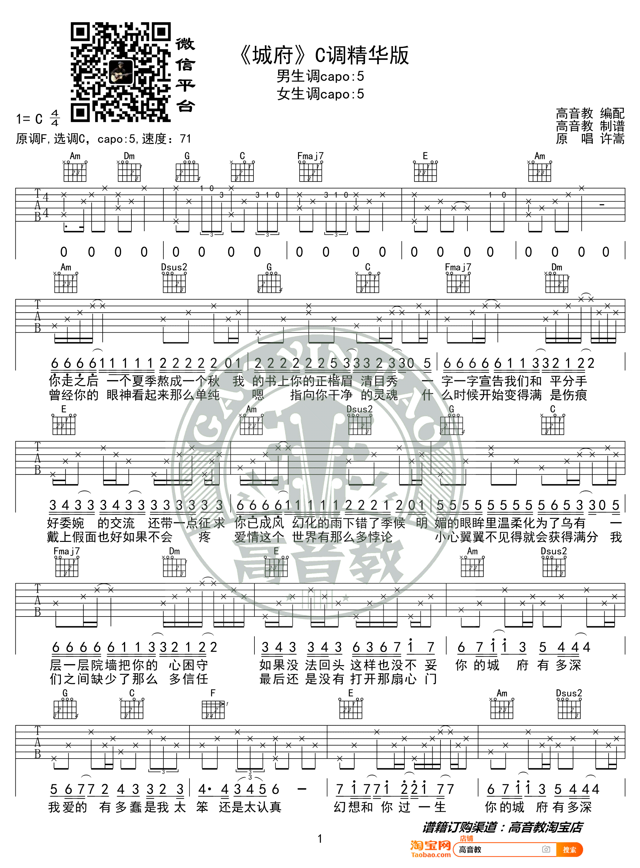 - 城市说吉他谱_宋冬野_城市说六线谱(图片)