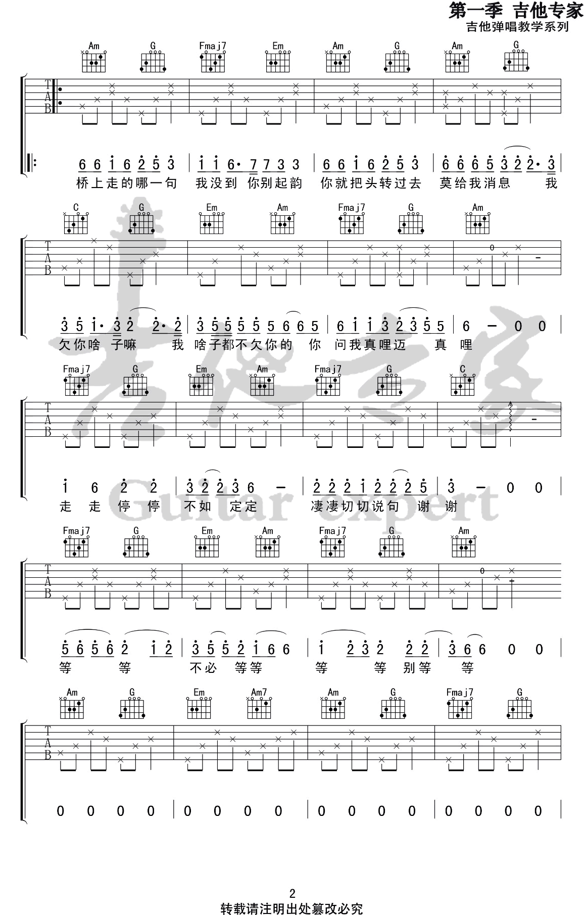 - 一曲相思吉他谱 半阳 C调弹唱谱 高清图片谱