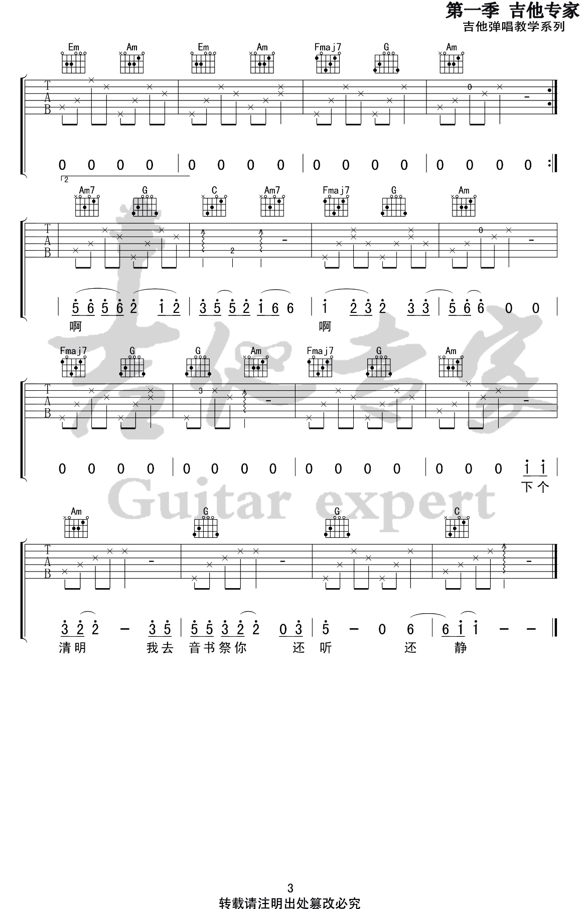 - 出山吉他谱 花粥王胜男 G调六线谱 高清版