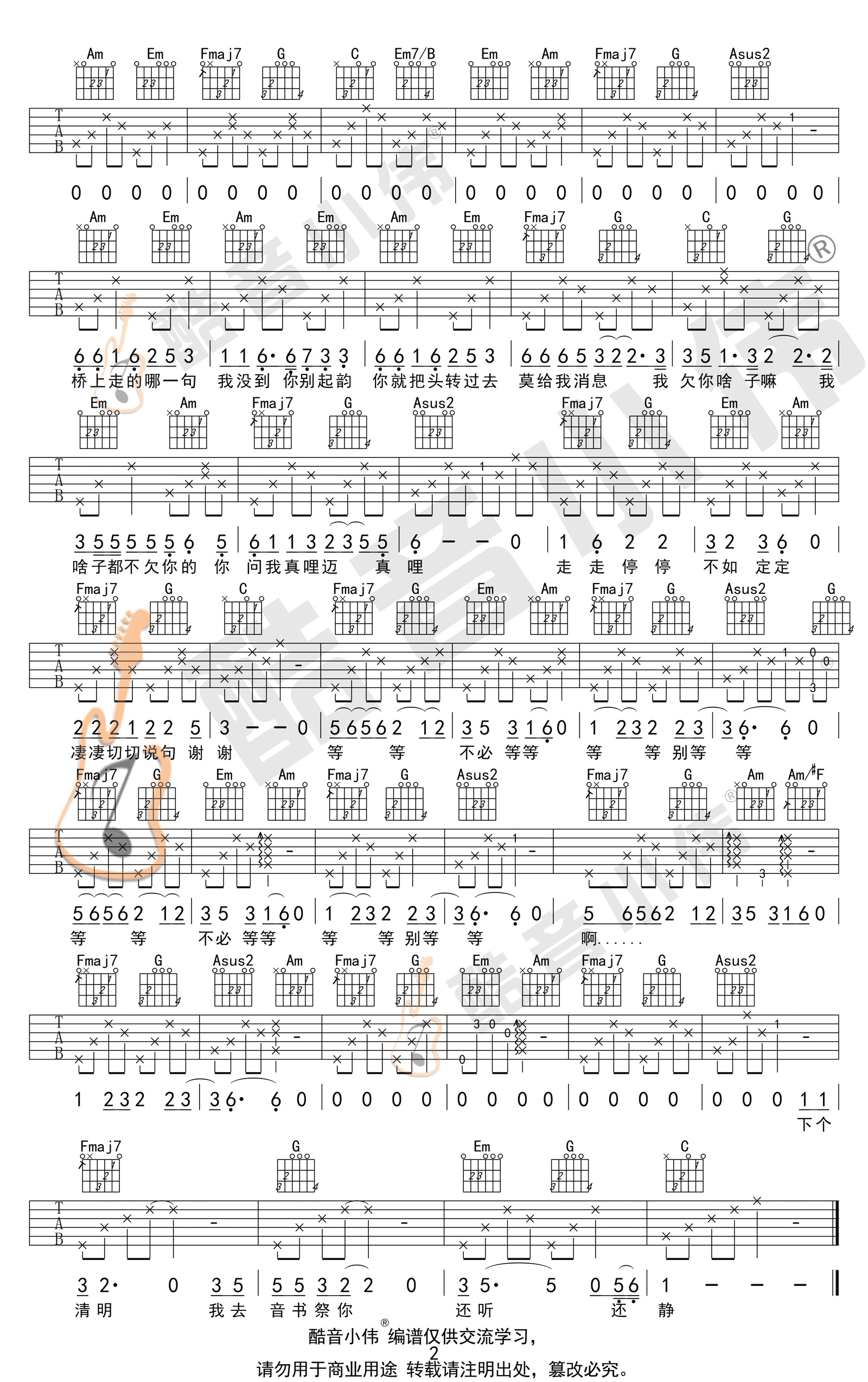- 我要你吉他谱 任素汐 G调六线谱 《驴得水》电影主题曲