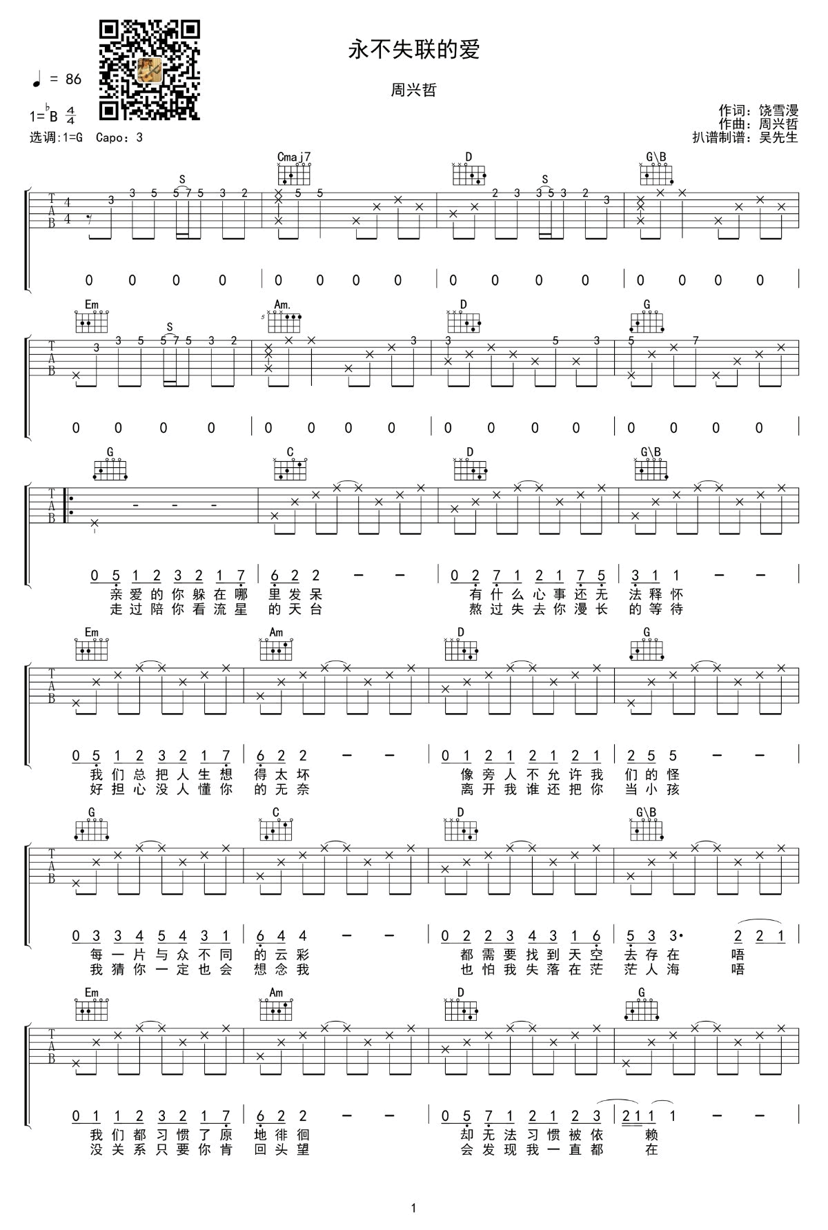 - 永不失联的爱吉他谱 周兴哲 G调弹唱谱