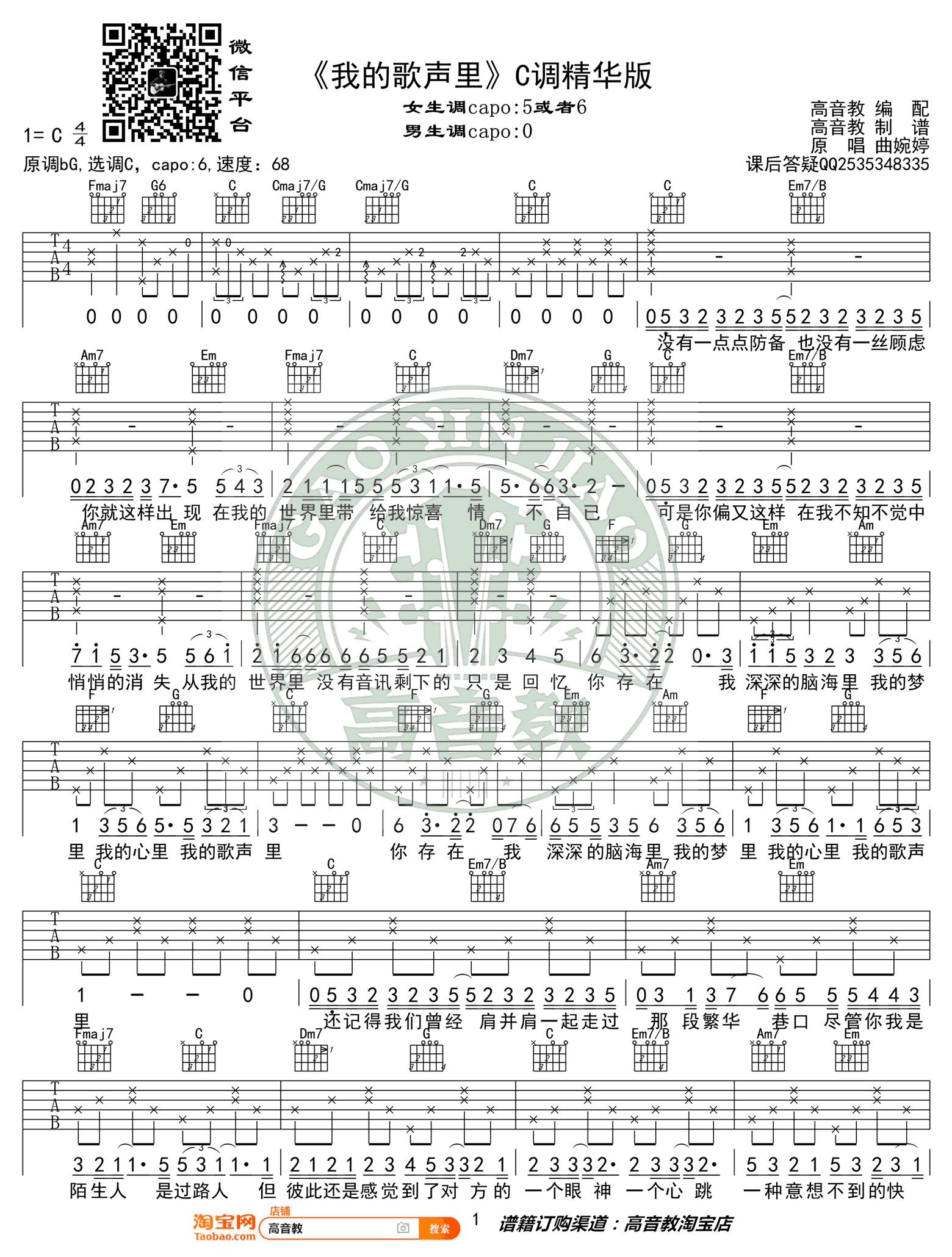 - 最美的期待吉他谱 C调 周笔畅 弹唱六线谱