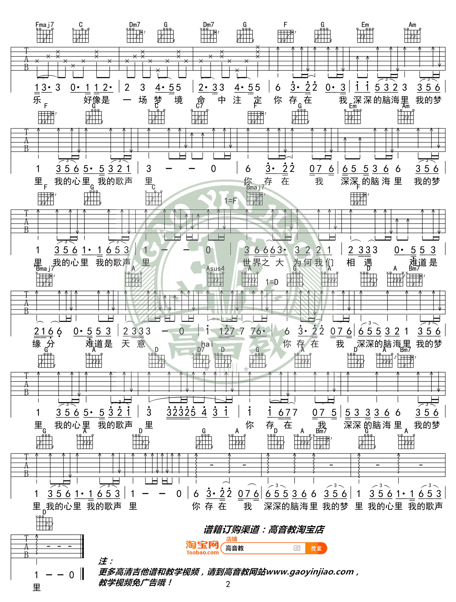 - 你啊你啊吉他谱 魏如萱 和弦图片谱