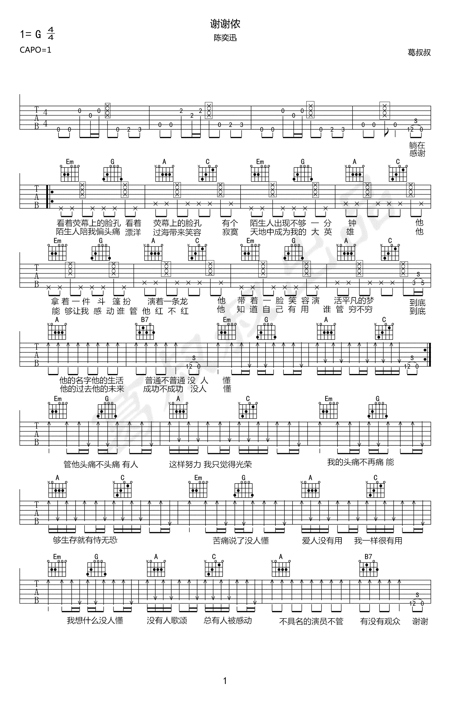 - 你给我听好吉他谱 G调 陈奕迅 和弦弹唱谱